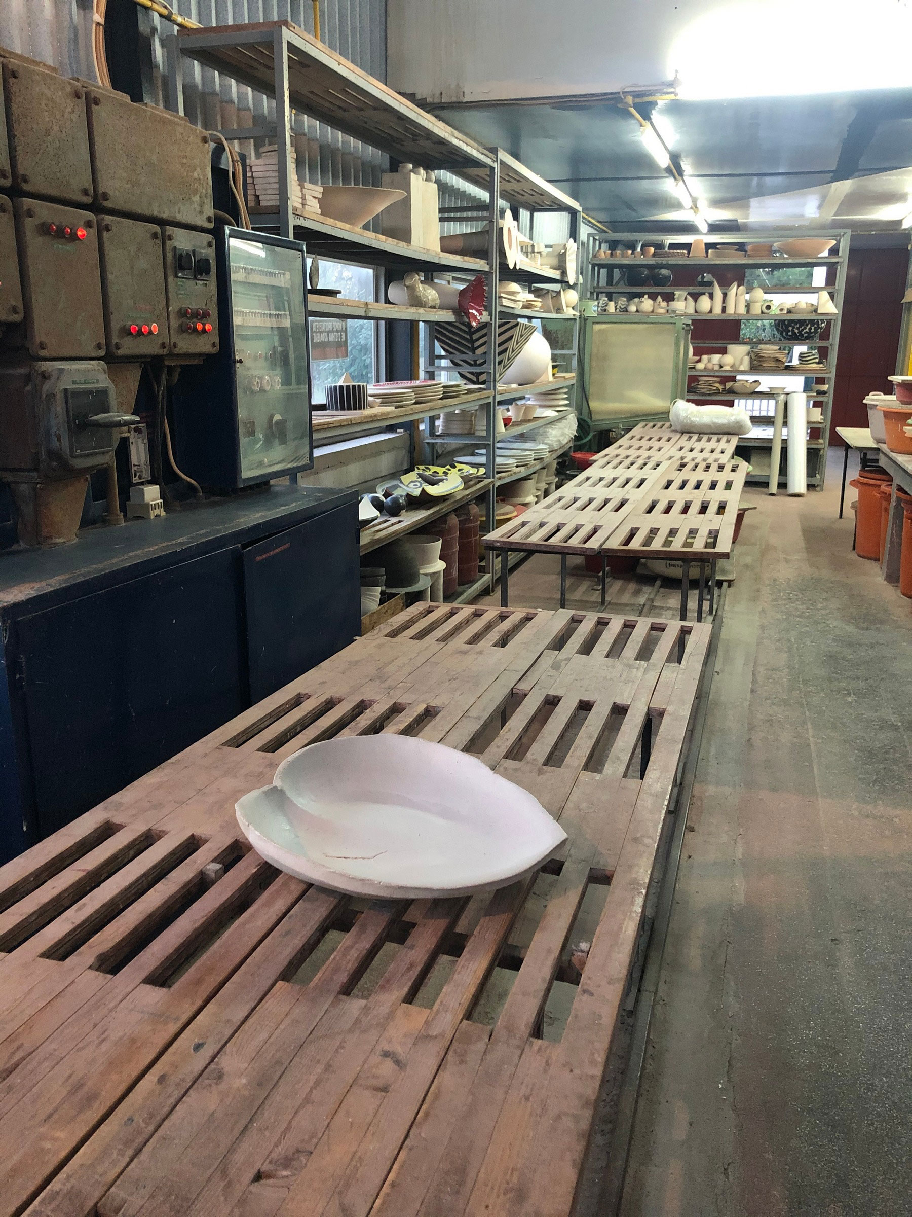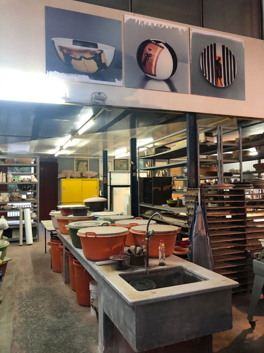»Σπούδασε κεραμική στο Hammersmith College of Art and Building του Λονδίνου (1957-1959). Επέστρεψε στην Ελλάδα στα τέλη του 1959 και άνοιξε το εργαστήριό της στο κέντρο της Αθήνας (Σόλωνος 20), το οποίο από το 1974 μεταφέρθηκε στην Κάντζα, σε κτήριο που είχε ειδικά σχεδιάσει ο αρχιτέκτονας Τάκης Ζενέτος. Το κτήριο σχεδιάστηκε ειδικά για εργαστήριο κεραμικής και γι’ αυτό περιλαμβάνει αρχιτεκτονικές λεπτομέρειες που εξυπηρετούν επιμέρους λειτουργίες του. Είναι χαρακτηριστική η πρόνοια στον σχεδιασμό για άπλετο φυσικό φως, που απαιτείται σε ένα εργαστήριο κεραμικής, χωρίς όμως οι ακτίνες του ηλίου να μπαίνουν μέσα με τρόπο που να στεγνώνουν γρήγορα τα κεραμικά στα ράφια. Όπως η Βερναδάκη σχολιάζει “ίσως να δείχνει κάπως καλοκαιρινή η κατασκευή του εργαστηρίου, αλλά είχαμε εδώ τους κλιβάνους που τους ανάβαμε σχεδόν κάθε μέρα και αυτοί αποδίδουν πάρα πολλή ζέστη», για να προσθέσει «το ότι η αρχιτεκτονική αυτού του χώρου ήταν τόσο μοντέρνα με έκανε κι εμένα να αλλάξω όλη μου την δημιουργική πορεία… καταλαβαίνει ότι το να ζω μέσα στον μοντερνισμό αυτού του εργαστηρίου με άλλαξε. Χάρη σε αυτό οδηγήθηκα εδώ που είμαι σήμερα”.