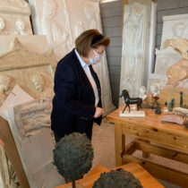 Κατά την επίσκεψη της Υπουργού στα εργαστήρια έγινε διεξοδική και δημιουργική συζήτηση με τα στελέχη και τους εργαζόμενους στον ΟΔΑΠ για ζητήματα που αφορούν στις νέες συνθήκες εργασίας και προσφοράς, που επιβάλλει  η νέα δομή του Οργανισμού,  όπως η κτηριακή και η υλικοτεχνική υποδομή του, η άμεση ανάγκη στελέχωσης των εργαστηρίων με εξειδικευμένο προσωπικό, ο εκσυγχρονισμός και ο εμπλουτισμός της παραγωγής των αντιγράφων, των απομιμημάτων, των εμπνευσμένων καλλιτεχνημάτων, αλλά και η δημιουργική επένδυση σε νέας υφής ύλες, στις προκλήσεις της ζήτησης που ήδη καταγράφεται, όχι μόνο στο εσωτερικό, αλλά και από το εξωτερικό.
