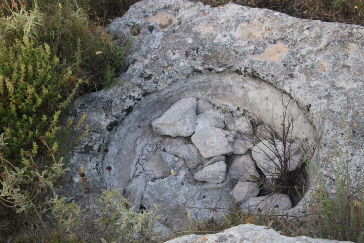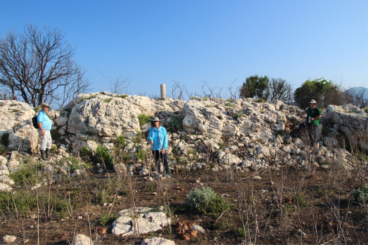 Όμως έπειτα από την πυρκαγιά που εκδηλώθηκε το 2018, η οποία κατέστρεψε ολοσχερώς την πυκνή και ακανθώδη βλάστηση της ευρύτερης περιοχής και κατέστησε προσβάσιμη την κορυφή του λόφου, διαπιστώθηκε η ύπαρξη επίγειων δομών μεγάλου ενδιαφέροντος γύρω από το τριγωνομετρικό σημείο αναφοράς της ΓΥΣ, όπως είναι π.χ. η ύπαρξη τριών εισόδων λαξευμένων στον ασβεστολιθικό βράχο (εικ. 6).