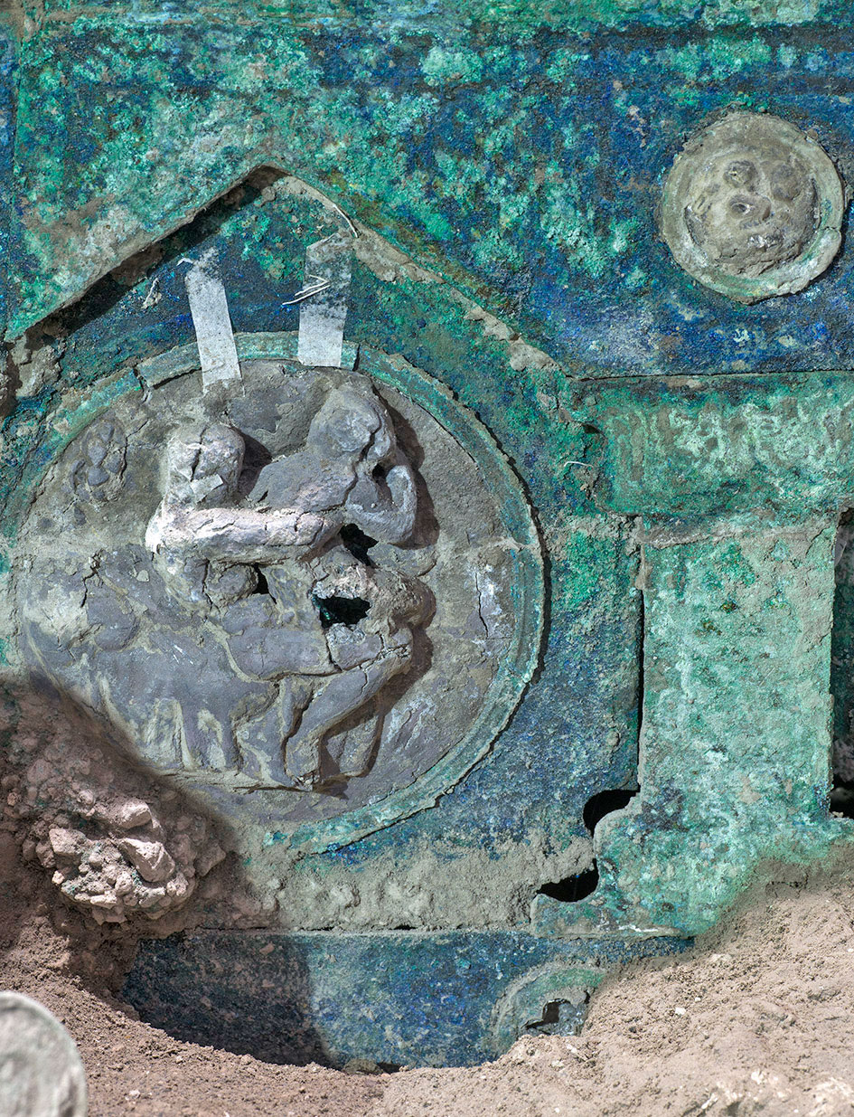 Η αρχαιολογική σκαπάνη έφερε στο φως ένα ρωμαϊκό άρμα από μια έπαυλη έξω από την Πομπηία, το οποίο ήταν σχεδόν άθικτο. Το σχεδόν τέλεια διατηρημένο τετράτροχο άρμα, το οποίο ήταν κατασκευασμένο από ορείχαλκο και κασσίτερο, βρέθηκε κοντά στους στάβλους μιας αρχαίας έπαυλης στην Τσίβιτα Τζουλιάνα, περίπου 700 μέτρα από τα τείχη της αρχαίας Πομπηίας.