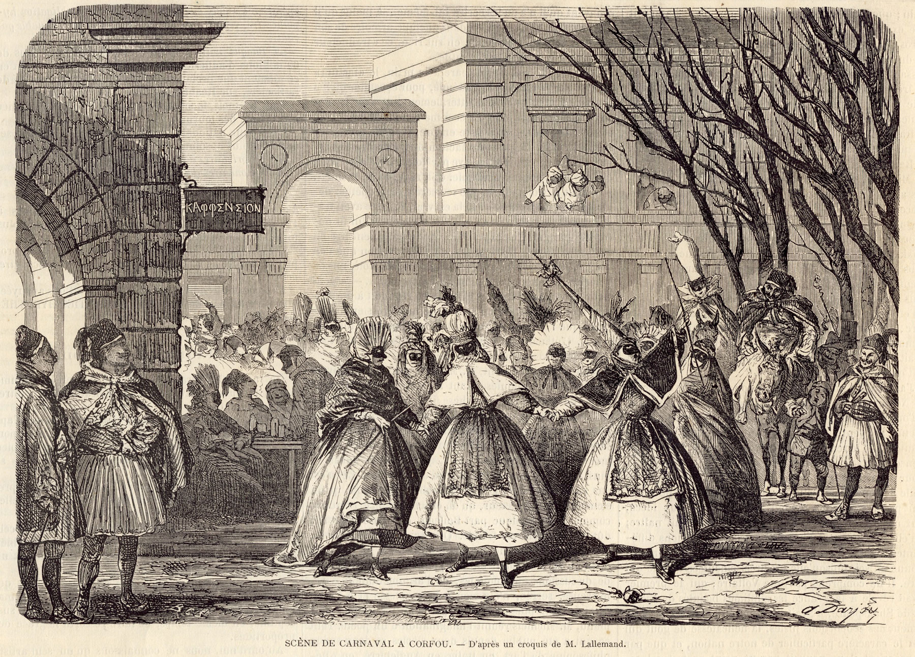 Στην Κέρκυρα οι γιορτές των καρναβαλιών διεξάγονταν στην κατεδαφισθείσα σήμερα, Porta Reale, τον σημερινό μεγάλο πεζόδρομο της «χώρας» που κατακλύζεται από εμπορικά καταστήματα.