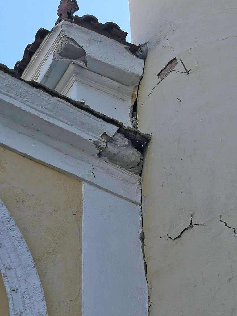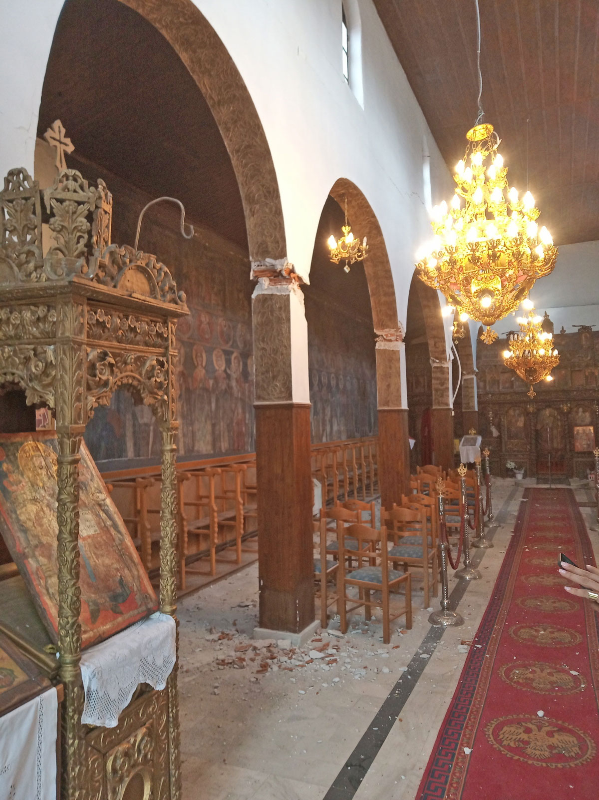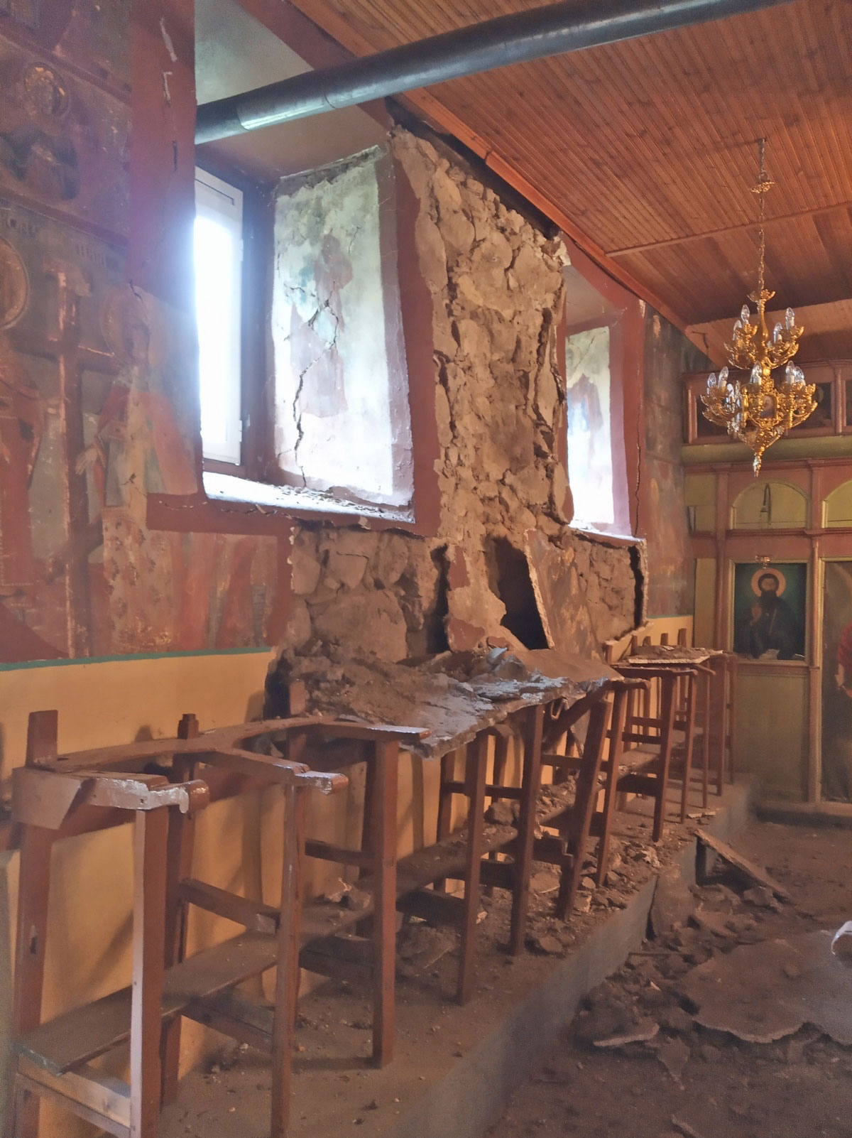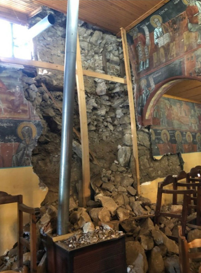 – Στο κτήριο του ναού της Αγίας Παρασκευής (19ος αιώνας) διαπιστώθηκε κλίση, ενώ εγκάρσιες και κάθετες ρωγμές είναι παντού εμφανείς. Τα κειμήλια μεταφέρθηκαν σε ασφαλές μέρος.