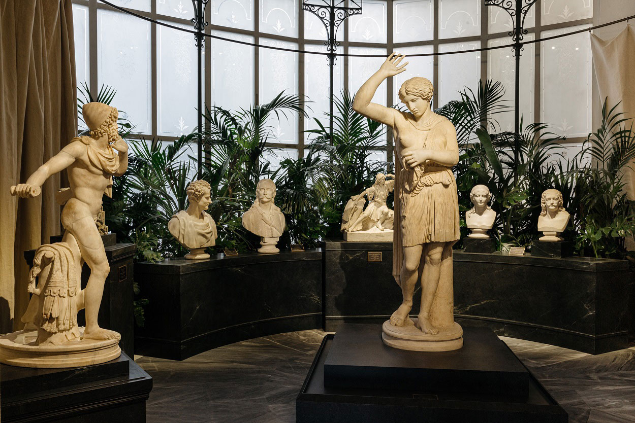 Τα αρχαία αριστουργήματα συνομιλούν με τις νεοκλασικές εκδοχές τους μέσα στο εμβληματικό Μέγαρο Σταθάτου, ένα δείγμα του ελληνικού Νεοκλασικισμού του Ερνστ Τσίλλερ,που αποτελούσε την κατοικία της οικογένειας του Όθωνα και της Αθηνάς Σταθάτου μέχρι το 1938. Το κοινό θα έχει τη μοναδική ευκαιρία να δει το εσωτερικό μιας πραγματικής μεγαλοαστικής ευρωπαϊκής κατοικίας του 19ου αιώνα, βιώνοντας μία θεατρική εμπειρία. Η διαμόρφωση χώρου είναι της Χλόης Ομπολένσκυ, που υπογράφει την πρώτη της σκηνογραφία σε μουσειακή έκθεση, και του Ανδρέα Γεωργιάδη.