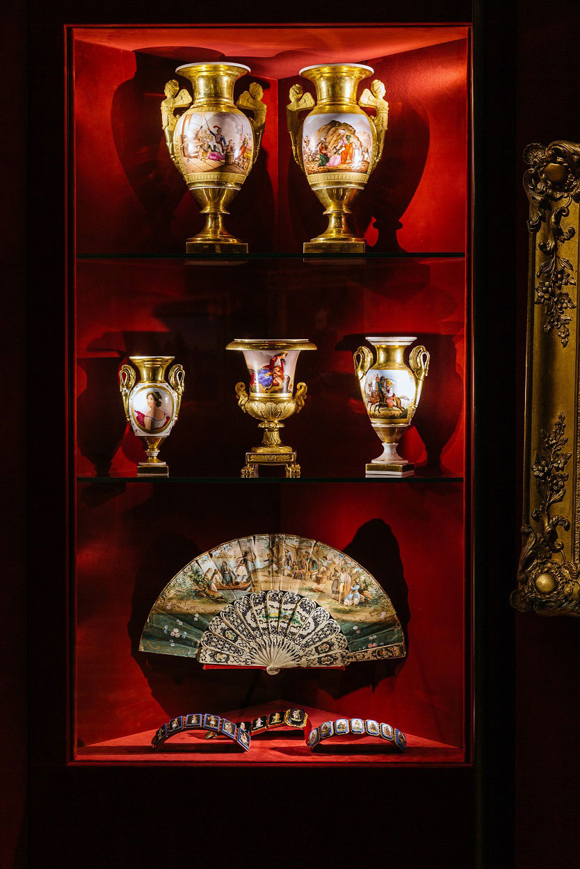 Η έκθεση περιλαμβάνει 60 έργα από τη Συλλογή Μαρτίνου –ελαιογραφίες, γλυπτά και ποικίλα καλλιτεχνικά αντικείμενα όπως ακρόπρωρα, ρολόγια, χρηστικές και διακοσμητικές πορσελάνες, έπιπλα, κοσμήματα, αμφορείς, μία ταπετσαρία τοίχου, ένα κέντημα, μία βεντάλια–, 5 αρχαιότητες και ένα εκμαγείο ρωμαϊκής αρχαιότητας.