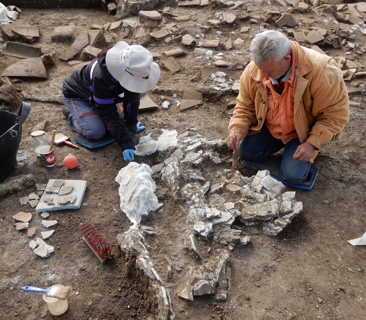«Οι επιγραφές των κεραμιδιών μας βοηθούν να συσχετίσουμε το κτίριο που σκάβουμε με τη λατρεία των μελών της βασιλικής οικογένειας. Πρόκειται για ένα κτίριο του 4ου αι. π.Χ. με μια μεγάλη επιδιόρθωση στα χρόνια του Φιλίππου Ε’, τέλος 3ου-αρχές 2ου αι. π.Χ. Από αυτή τη φάση έχουμε αυτά τα δάπεδα, τα κονιάματα, τη στέγη, ειδώλια, στοιχεία που μας παραπέμπουν σε ιερό», εξηγεί στο ΑΠΕ-ΜΠΕ η προϊσταμένη της ΕΦΑ Ημαθίας Αγγελική Κοτταρίδη.