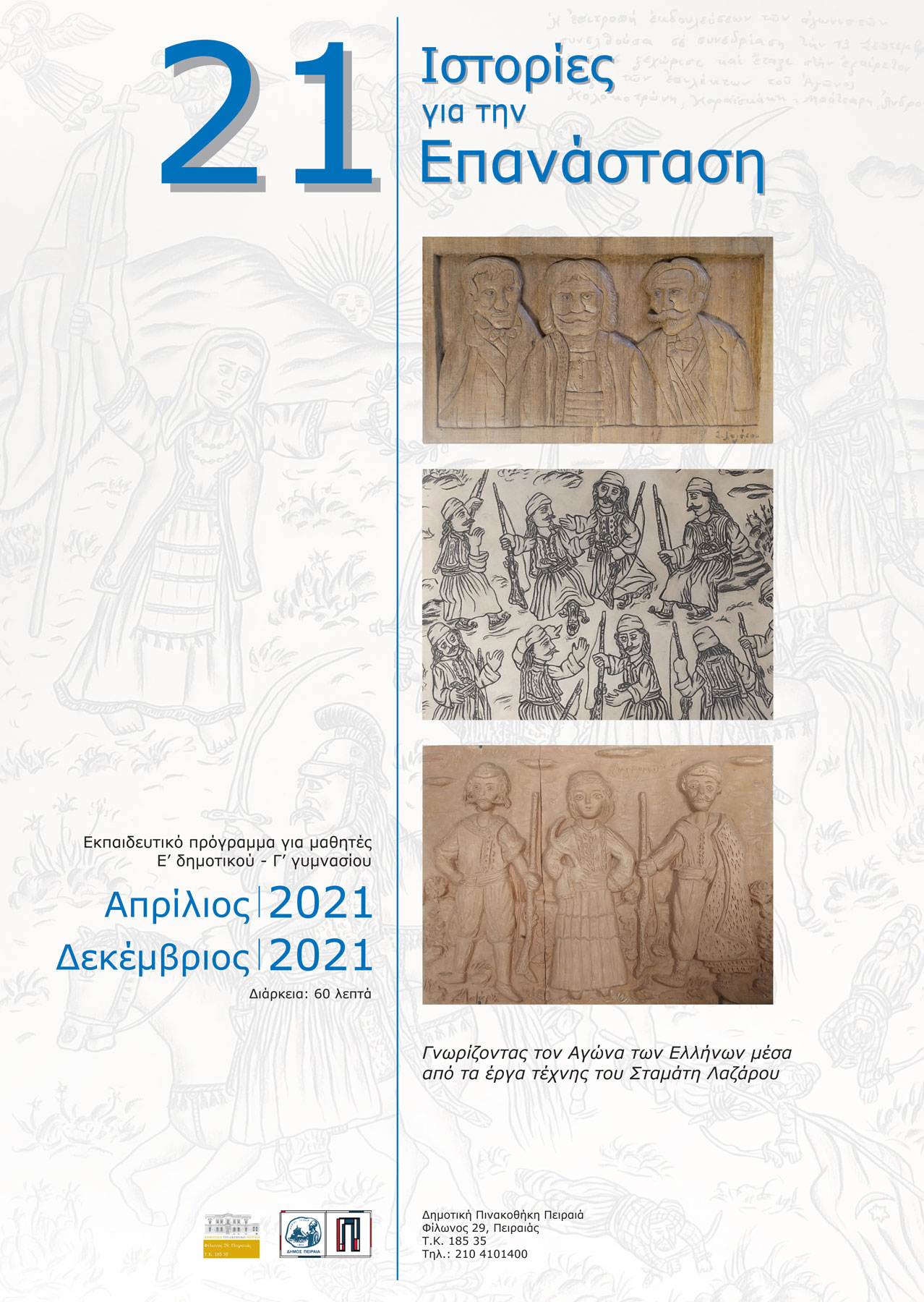 Διαδικτυακό εκπαιδευτικό πρόγραμμα με θέμα «21 Ιστορίες για την Επανάσταση: Γνωρίζοντας τον Αγώνα των Ελλήνων μέσα από την τέχνη του Σταμάτη Λαζάρου» διοργανώνει η Δημοτική Πινακοθήκη Πειραιά στο πλαίσιο του εορτασμού των 200 χρόνων από την Επανάσταση του 1821.