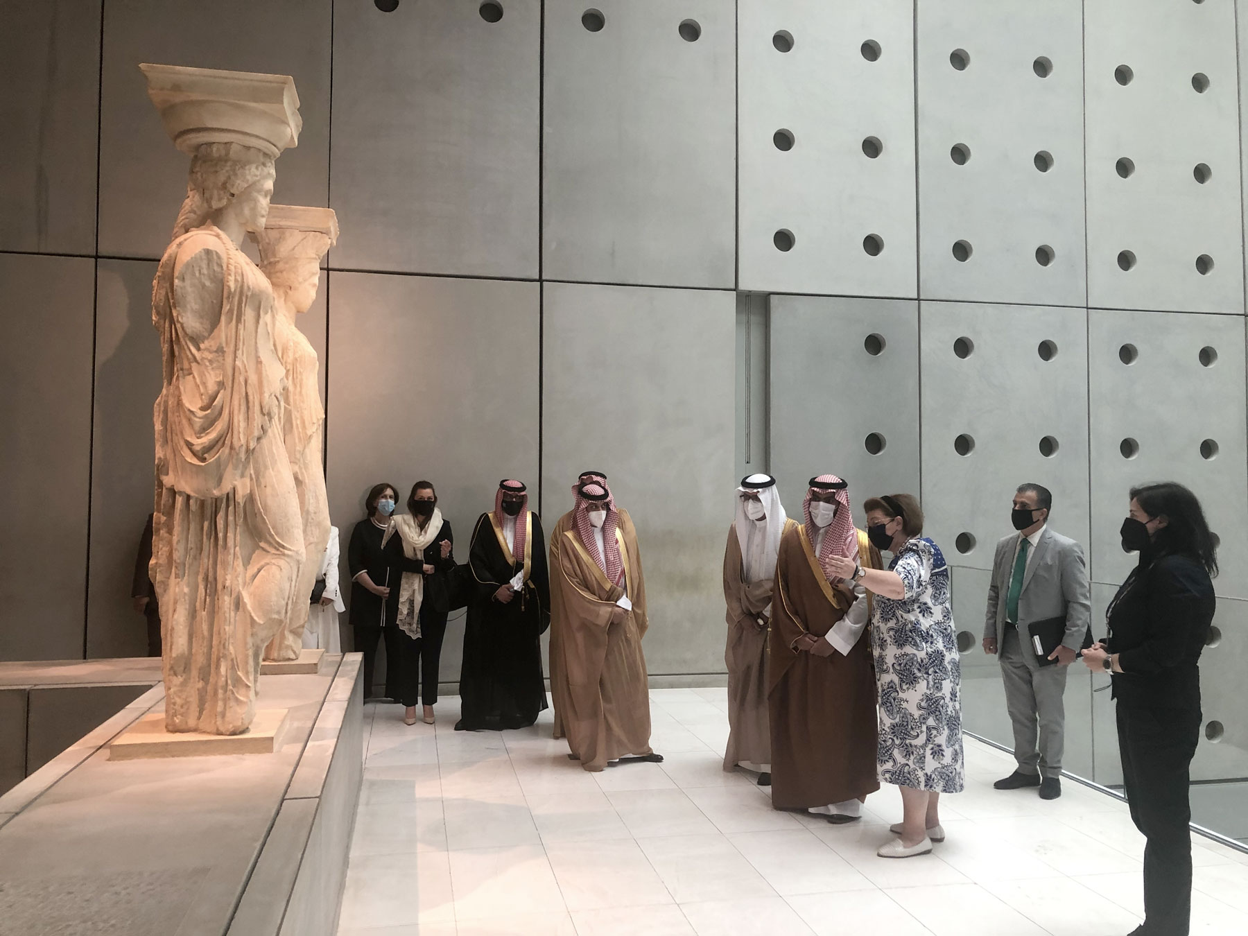 Οι Υπουργοί Πολιτισμού των δύο χωρών συναντήθηκαν χθες το πρωί στο Μουσείο της Ακρόπολης, όπου ο Πρίγκιπας Badr bin Abdullah bin Mohammed bin Farhan Al Saud ξεναγήθηκε στους χώρους του Μουσείου και στην αίθουσα του Παρθενώνα. Στο Μουσείο της Ακρόπολης πραγματοποιήθηκε συνάντηση εργασίας, κατά την οποία ο Υπουργός Πολιτισμού της Σαουδικής Αραβίας απηύθυνε επίσημη πρόσκληση στη Λίνα Μενδώνη να επισκεφθεί το Ριάντ, προκειμένου να υπογραφεί Μνημόνιο Συνεργασίας μεταξύ των δύο χωρών, στον τομέα της Πολιτιστικής Κληρονομιάς και του Σύγχρονου Πολιτισμού.
