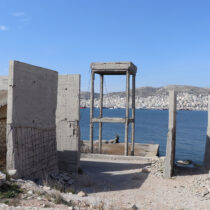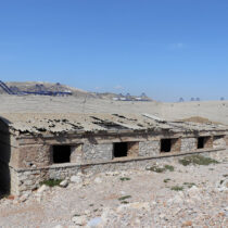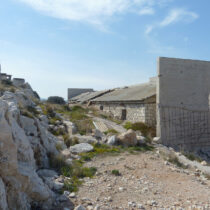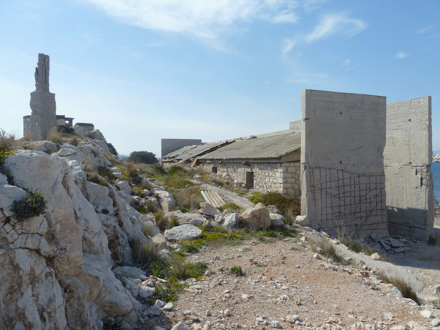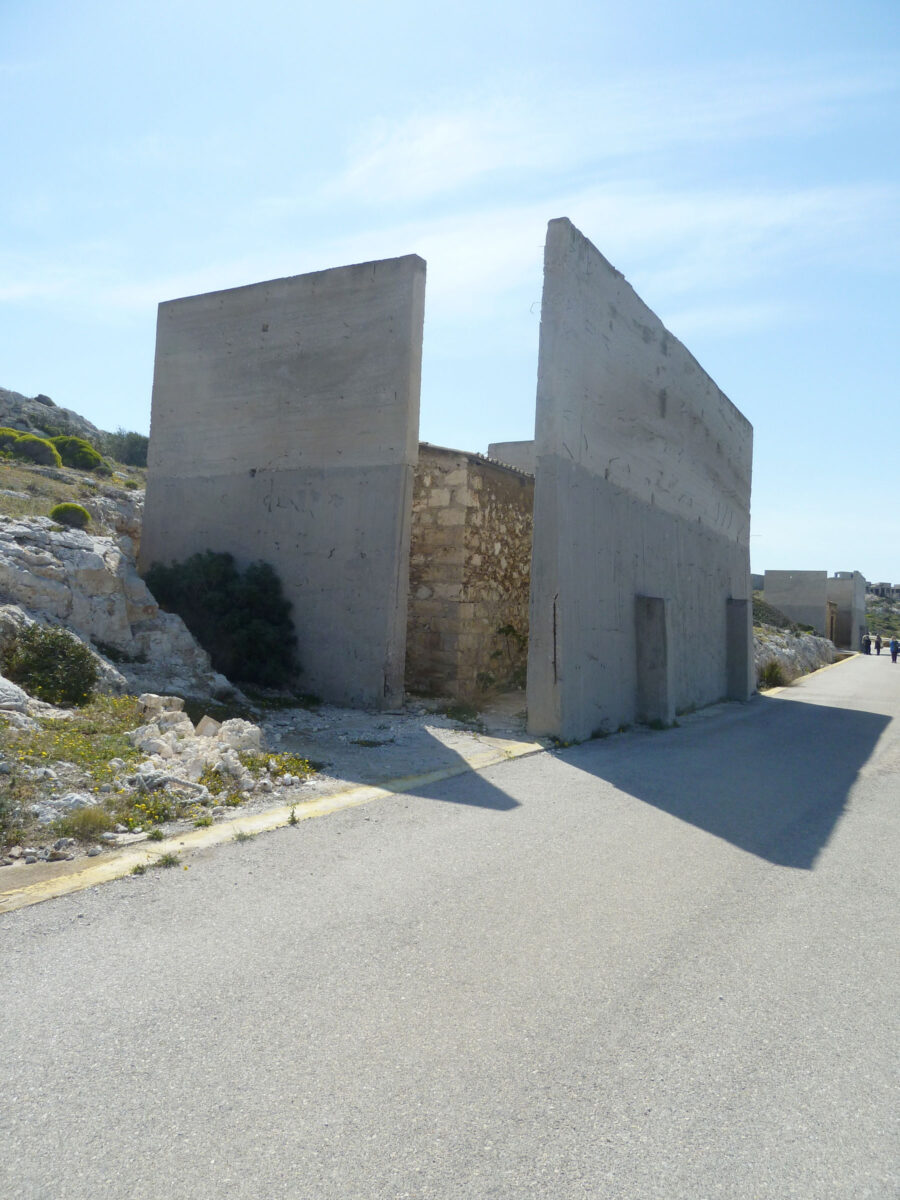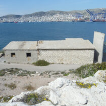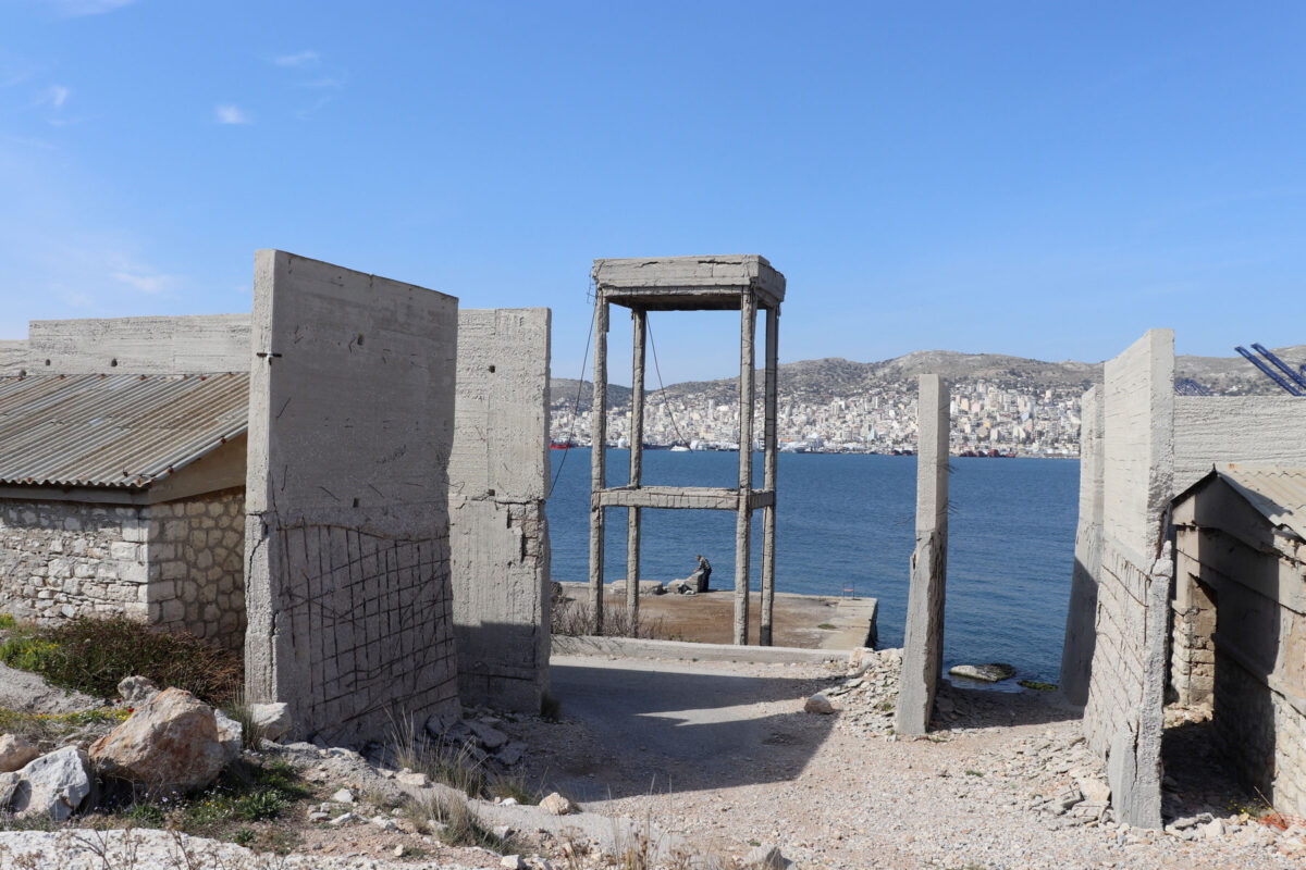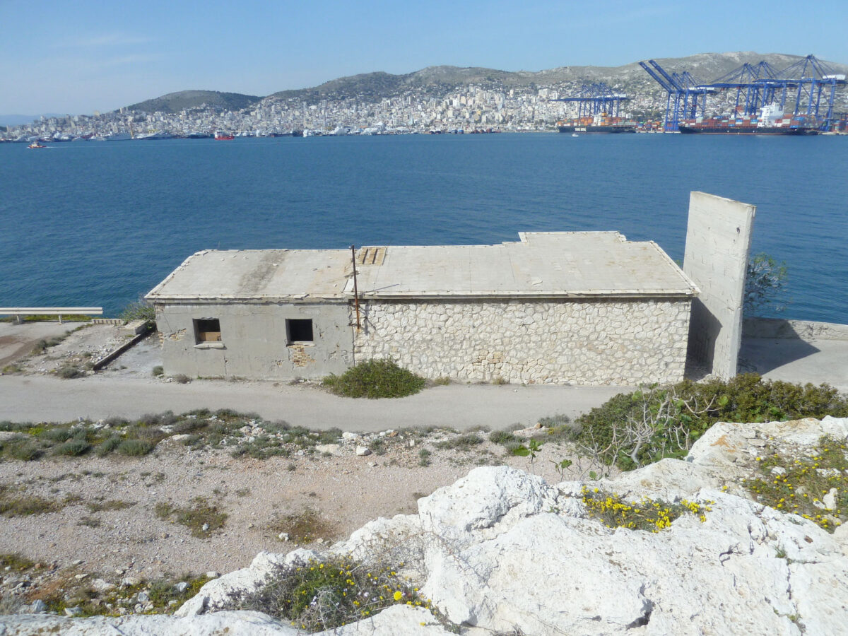 Στο άκρο της χερσονήσου της Κυνόσουρας υπάρχει ένα σύμπλεγμα εγκαταλελειμμένων κτισμάτων του Πολεμικού Ναυτικού, τα οποία αποτελούνται από 5 πέτρινα κτήρια (Α, Β, Γ, Δ, Ε) στη βόρεια πλευρά, 3 παρατηρητήρια (Κ1, Κ2, Κ3) στη νότια πλευρά, έναν υδατόπυργο στην άκρη της χερσονήσου, ένα κτήριο φυλακίου (Η) και ένα φανό στο ακρότατο τμήμα της χερσονήσου. Σύμφωνα με τους μελετητές τα κτήρια φαίνεται ότι κατασκευάστηκαν στον Α’ Παγκόσμιο Πόλεμο. Τα κτίρια περιβάλλονται από τοίχους-«οχυρά» από οπλισμένο σκυρόδεμα, που πιθανότατα κατασκευάστηκαν την περίοδο 1936-1941. Σε μικρή απόσταση βρίσκονται οι εγκαταστάσεις ενός εγκαταλελειμμένου λατομείου.