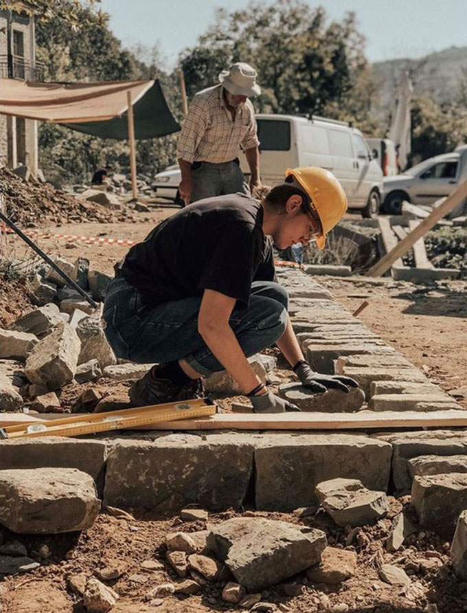 Από την Αρίστη και τη Βοβούσα στο Ζαγόρι, την Πλάκα στα Βόρεια Τζουμέρκα έως και το νησί της Θηρασιάς, τα μέλη της ομάδας αναζητούν, κάθε φορά που επισκέπτονται έναν τόπο, να διασυνδεθούν και να αλληλεπιδράσουν με την τοπική κοινότητα. Σχεδιάζουν, φωτογραφίζουν, γνωρίζονται με τους κατοίκους και ιδιαίτερα με τους «μάστορες» της περιοχής, ακούνε τις ιστορίες τους. Η υλοποίηση ενός έργου μπορεί να διαρκέσει από 1-2 εβδομάδες έως 2 μήνες, γεγονός που τους δίνει τη δυνατότητα να οργανώνουν εργαστήρια για νέους τεχνίτες σαν μία μορφή μαθητείας για όσους ασχολούνται με την οικοδομή και θέλουν να εκπαιδευτούν από ειδικούς. Όπως εξηγεί ο κ. Κωστούλας στο ΑΠΕ-ΜΠΕ, μέσω αυτών των δράσεων «αναδεικνύεται η πολιτιστική κληρονομιά του εκάστοτε τόπου μέσω του ίδιου του έργου αποκατάστασης όσο και μέσα από επισκέψεις σε άλλα χτίσματα και μνημεία της περιοχής. Ταυτόχρονα κάνουμε και διαλέξεις, ομιλίες για την πολιτιστική κληρονομιά με διάφορους ακαδημαϊκούς με τους οποίους συνεργαζόμαστε».