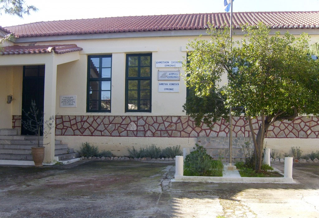 Το κτήριο λειτούργησε ως Δημοτικό Σχολείο από το 1932 έως το 1999. Κατόπιν στέγασε το Δημαρχείο Ερμιόνης από το 1999 έως και το 2010. Σήμερα στεγάζει υπηρεσίες της Δημοτικής Ενότητας Ερμιόνης, μεταξύ των οποίων το ΚΕΠ, το Λιμενικό Ταμείο Ερμιονίδας και το Πρόγραμμα «Βοήθεια στο Σπίτι». Πρόκειται για υπερυψωμένο ισόγειο κτίσμα πλησίον παλαιοχριστιανικής βασιλικής του 4ου αιώνα, το οποίο προβλέπεται να λειτουργήσει ως κέντρο προβολής και ανάδειξης της μακραίωνης ιστορίας της πόλης, αλλά και αφετηρία της αστικής πολιτιστικής διαδρομής και περιήγησης στην ευρύτερη περιοχή της Ερμιονίδας και της Αργολίδας.
