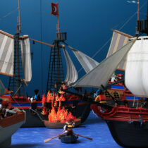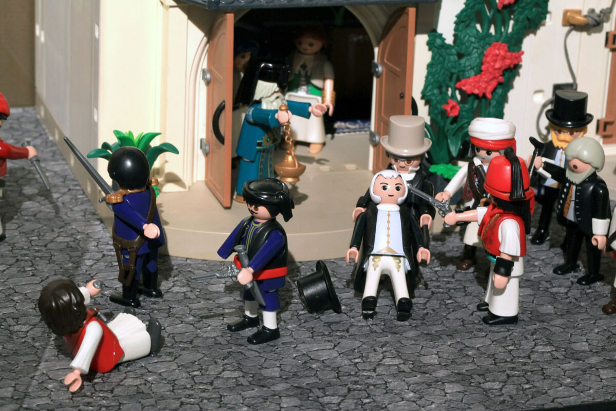 Ο Όρκος των Φιλικών, η Άλωση της Τριπολιτσάς, η Έξοδος του Μεσολογγίου, η Φυγή των Παργινών είναι κάποια από τα διοράματα που δεσπόζουν στην έκθεση. Πρωταγωνιστές της Επανάστασης, Έλληνες, Φιλέλληνες και Οθωμανοί, άντρες και γυναίκες που έπαιξαν σημαντικό ρόλο στην εξέλιξη των γεγονότων, παρουσιάζονται σε φιγούρες PLAYMOBIL, συνοδευόμενοι από σύντομο βιογραφικό τους. Έτσι οπτικοποιούνται, με κατανοητό και ευφάνταστο τρόπο, όσα θέλει να αφηγηθεί η έκθεση και η Ιστορία γίνεται ένα απολαυστικό ταξίδι όχι μόνο για μικρούς αλλά και για μεγάλους.