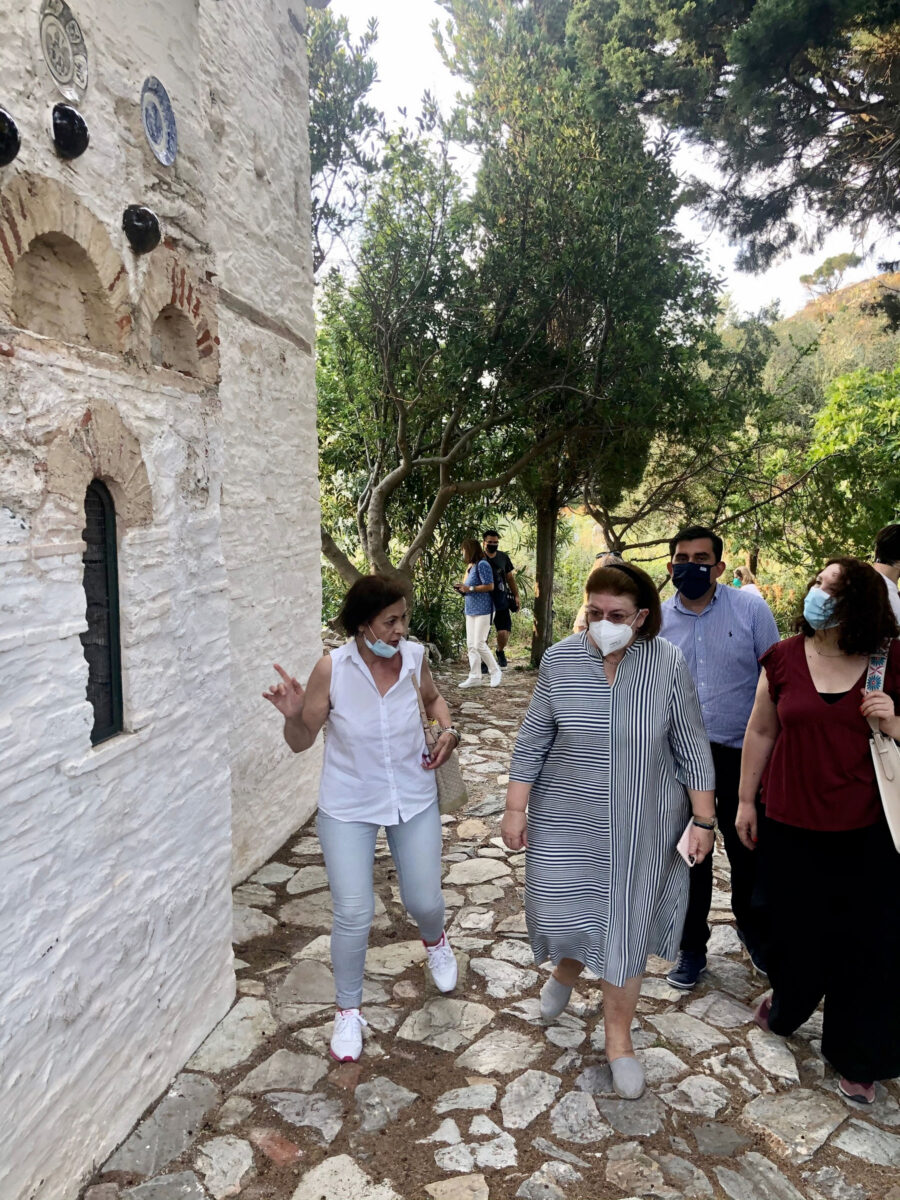 Η Λίνα Μενδώνη, συνοδευόμενη από τον Περιφερειάρχη Θεσσαλίας Κώστα Αγοραστό, τον δήμαρχο Σκιάθου Θοδωρή Τζούμα, την Προϊσταμένη της Εφορείας Αρχαιοτήτων Μαγνησίας Ανθή Μπάτζιου και υπηρεσιακά στελέχη του ΥΠΠΟΑ, επισκέφθηκε το Κάστρο της Σκιάθου, την Ιερά Μονή Εικονίστριας και την Ιερά Μονή Παναγίας Κεχριάς. Τα έργα έχουν ενταχθεί και χρηματοδοτούνται από το ΠΕΠ Θεσσαλίας – ΕΣΠΑ 2014-2021.