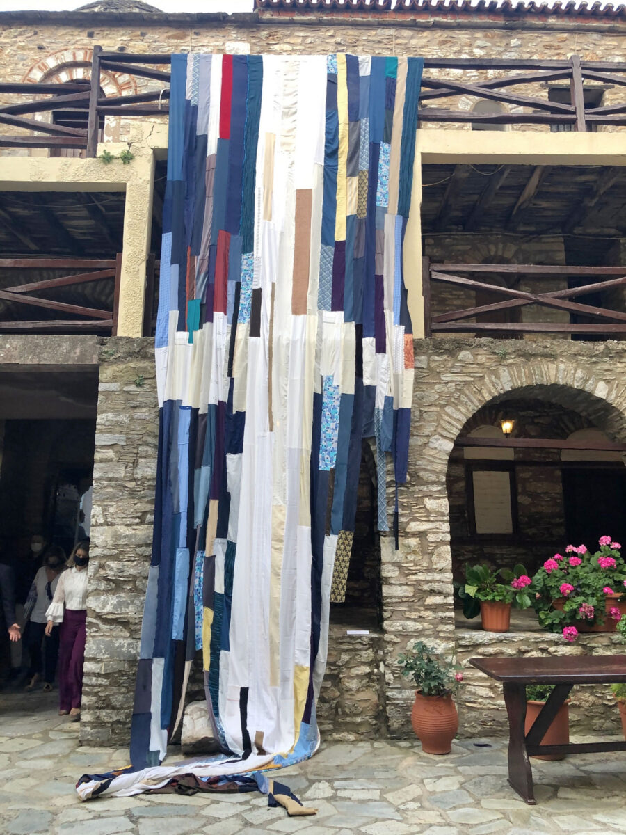 »Τα ίδια αυτά αναλλοίωτα, δυναμικά, ζωογόνα και πάντοτε μεστά νοημάτων και συμβολισμών στοιχεία, αποτελούν την πηγή έμπνευσης και το σημείο αναφοράς της σημαντικής αυτής έκθεσης με αντικείμενο την ελληνική σημαία, που δικαιωματικά –θα έλεγα– φιλοξενείται στον ιστορικό και εμβληματικό χώρο της Μονής του Ευαγγελισμού και σήμερα την αποδίδουμε στο κοινό.