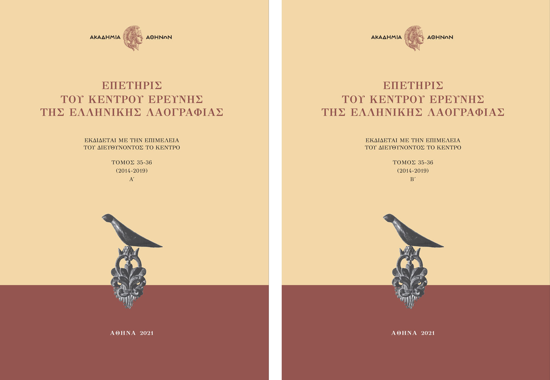 Επετηρίς του Κέντρου Ερεύνης της Ελληνικής Λαογραφίας της Ακαδημίας Αθηνών, τόμ. 35-36 (2014-2019), Αθήνα 2021, 966 σελ. ISSN: 1011-7946.