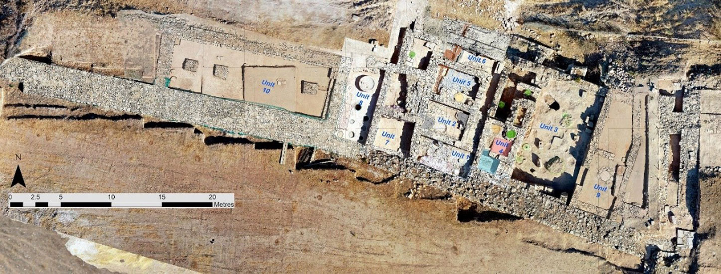 Η ανασκαφή της ανατολικότερης μονάδας των εργαστηρίων (Μονάδα 9) και ο καθαρισμός του δυτικού τείχους του ανακτόρου, που βρίσκεται σε απόσταση μόλις 1-3 μ., ανέτρεψαν την υπόθεση της ύπαρξης πρόσβασης και άμεσης επικοινωνίας ανάμεσα στα δύο συμπλέγματα. Αν και η κεραμική επιβεβαιώνει ότι και τα δύο είναι μνημεία της Κυπρο-Κλασικής περιόδου, αρχίζει να διαφαίνεται ότι η ανέγερση του ανακτόρου προηγήθηκε της ανέγερσης των εργαστηρίων. Συγχρόνως, η συνέχιση της ανασκαφής στο δυτικό τμήμα των εργαστηρίων αποκάλυψε τη Μονάδα 10, η οποία ανήκει σε έναν εντελώς νέο αρχιτεκτονικό σχεδιασμό: πρόκειται για μια ενιαία αίθουσα μεγάλων διαστάσεων (16,20 μ. μήκος και 5,30 μ. πλάτος) με εμβαδόν 85,8 τ.μ. Το ενιαίο αυτού του εντυπωσιακού χώρου κατακερματίζεται από τεράστιους πεσσούς (περ. 1×1 μ.), οι οποίοι είναι τοποθετημένοι κοντά στην ανατολική και δυτική αντηρίδα αντιστοίχως, ενώ άλλοι δυο εντοπίζονται στον ενδιάμεσο χώρο. Προφανώς, σκοπός των πεσσών ήταν η υποστήριξη ορόφου. Όμως, το υλικό από τη Μονάδα 10 δεν αφήνει καμιά αμφιβολία ότι το έργο δεν ολοκληρώθηκε. Παρά την έκτασή της, η Μονάδα 10 περιείχε ελάχιστους λίθους και πλίνθους, που δεν τεκμηριώνουν την κατάρρευση ορόφου. Επίσης, τα δάπεδα της Μονάδας 10 δεν παρουσιάζουν καμιά ένδειξη χρήσης, ούτε και είναι καταχωμένα κάτω από λίθους και πλίνθους, όπως ήταν οι άλλες μονάδες που έχουν ανασκαφεί.