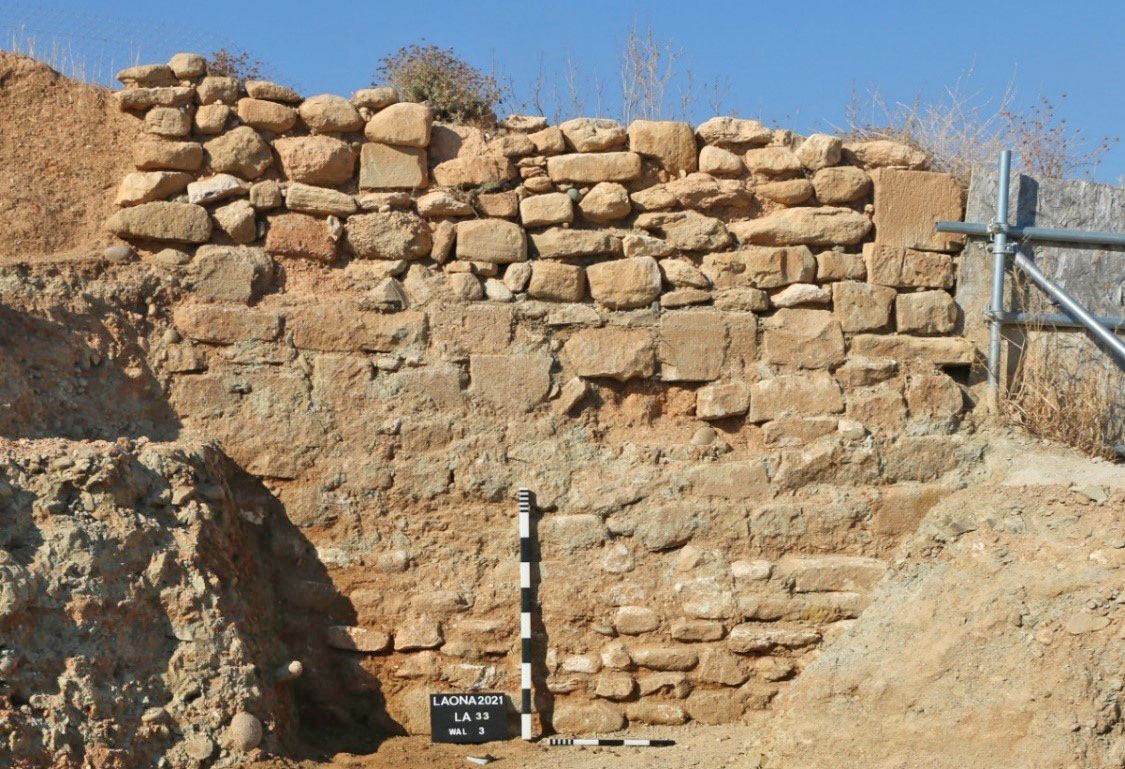 Οι εργασίες της αποστολής του Πανεπιστημίου Κύπρου στον τύμβο της Λαόνας επικεντρώθηκαν στην αποκάλυψη της εσωτερικής βορειοανατολικής γωνίας του τείχους του φρουρίου. Ανάμεσα στη βόρεια και τη μνημειακή ανατολική όψη του τείχους –που έχει επικαλυφθεί προσωρινά για σκοπούς προστασίας από το Τμήμα Αρχαιοτήτων– αποκαλύφθηκε τμήμα μήκους 3 μέτρων, το οποίο αντί για πλίνθους έχει στην όψη αργούς λίθους. Αποκαλύφθηκαν συνολικά 16 σειρές λίθων από το υψόμετρο των 113,129 μ. μέχρι και τα 109,889 μ. Αναμένεται ότι υπάρχουν τουλάχιστον άλλα δύο μέτρα της λίθινης όψης πιο χαμηλά, αφού το δάπεδο χρήσης του φρουρίου εντοπίζεται στα 108 μ. Η ανασκαφή διεξάγεται με πολύ προσεκτικούς ρυθμούς για σκοπούς προστασίας του μνημείου.
