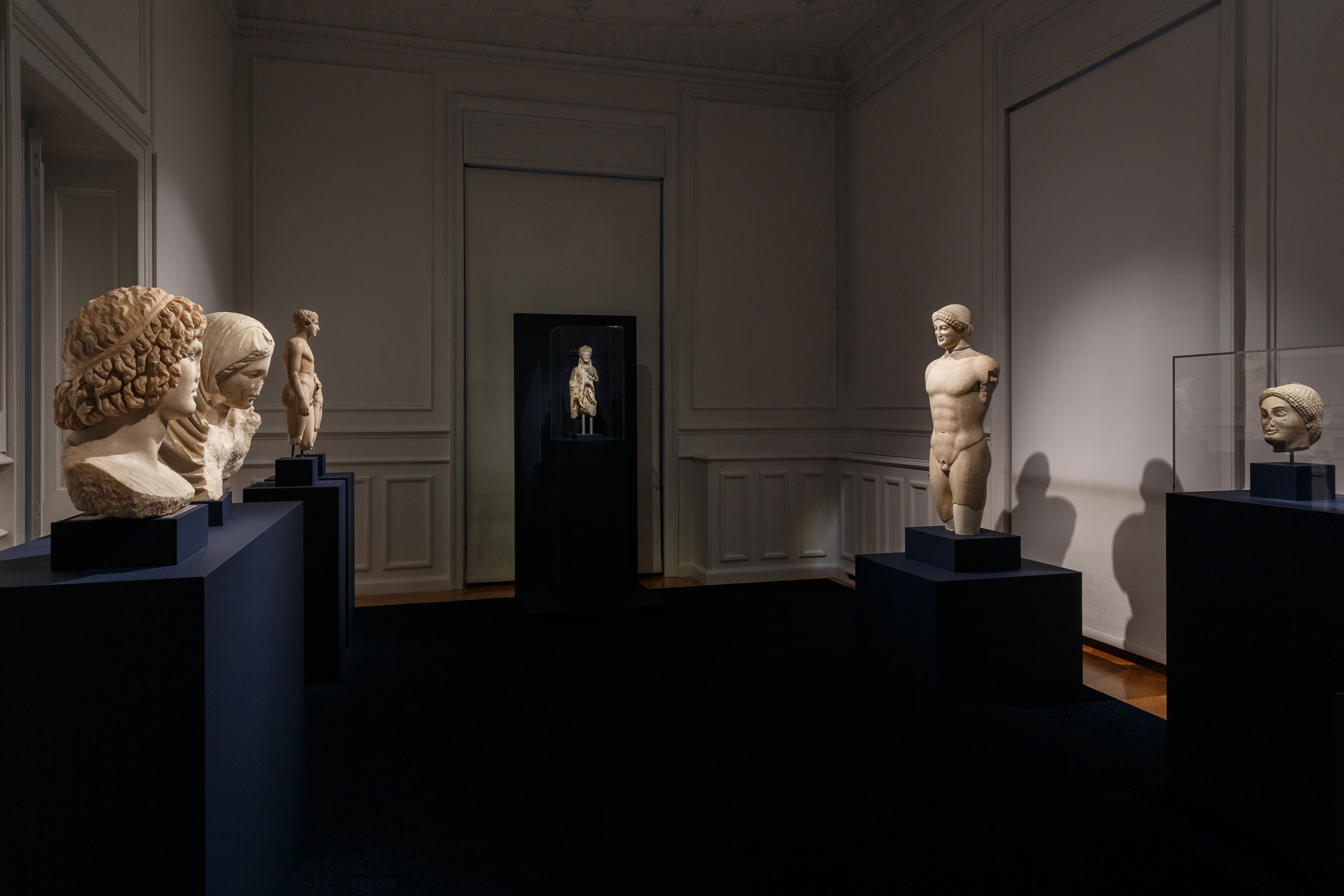 Τριακόσιες εμβληματικές αρχαιότητες από πενήντα δύο Mουσεία, Συλλογές και Εφορείες Αρχαιοτήτων σε όλη την ελληνική επικράτεια, την Ιταλία (Ιταλική χερσόνησο και Σικελία) και το Βατικανό, παρουσιάζονται στη συντριπτική πλειονότητά τους για πρώτη φορά εκτός των μουσείων προέλευσής τους και συναντώνται στο Μουσείο Κυκλαδικής Τέχνης, για να αποδώσουν ολοκληρωμένα το ιδεώδες του Κάλλους. Τα εκθέματα που επιλέχθηκαν χρονολογούνται κυρίως από τον 7ο έως και τον 1ο αι. π.Χ., δηλαδή από την Αρχαϊκή έως και την Ελληνιστική περίοδο και συμπληρώνονται από ελάχιστα έργα των ρωμαϊκών χρόνων, σε περιπτώσεις όπου πρωτότυπα έργα των προηγούμενων περιόδων έχουν σωθεί μόνο σε αντίγραφα.