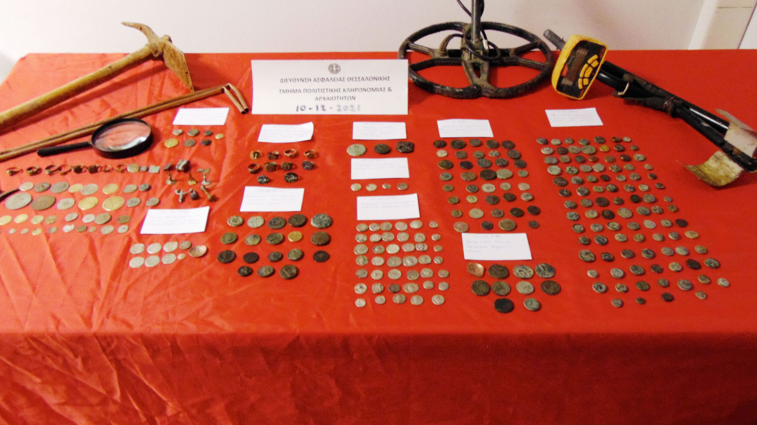 Έναν μικρό αρχαιολογικό θησαυρό έκρυβαν δύο άντρες, 66 και 40 ετών, οι οποίοι συνελήφθησαν το μεσημέρι της περασμένης Παρασκευής από αστυνομικούς του τμήματος Προστασίας Πολιτιστικής Κληρονομιάς και Αρχαιοτήτων Θεσσαλονίκης.