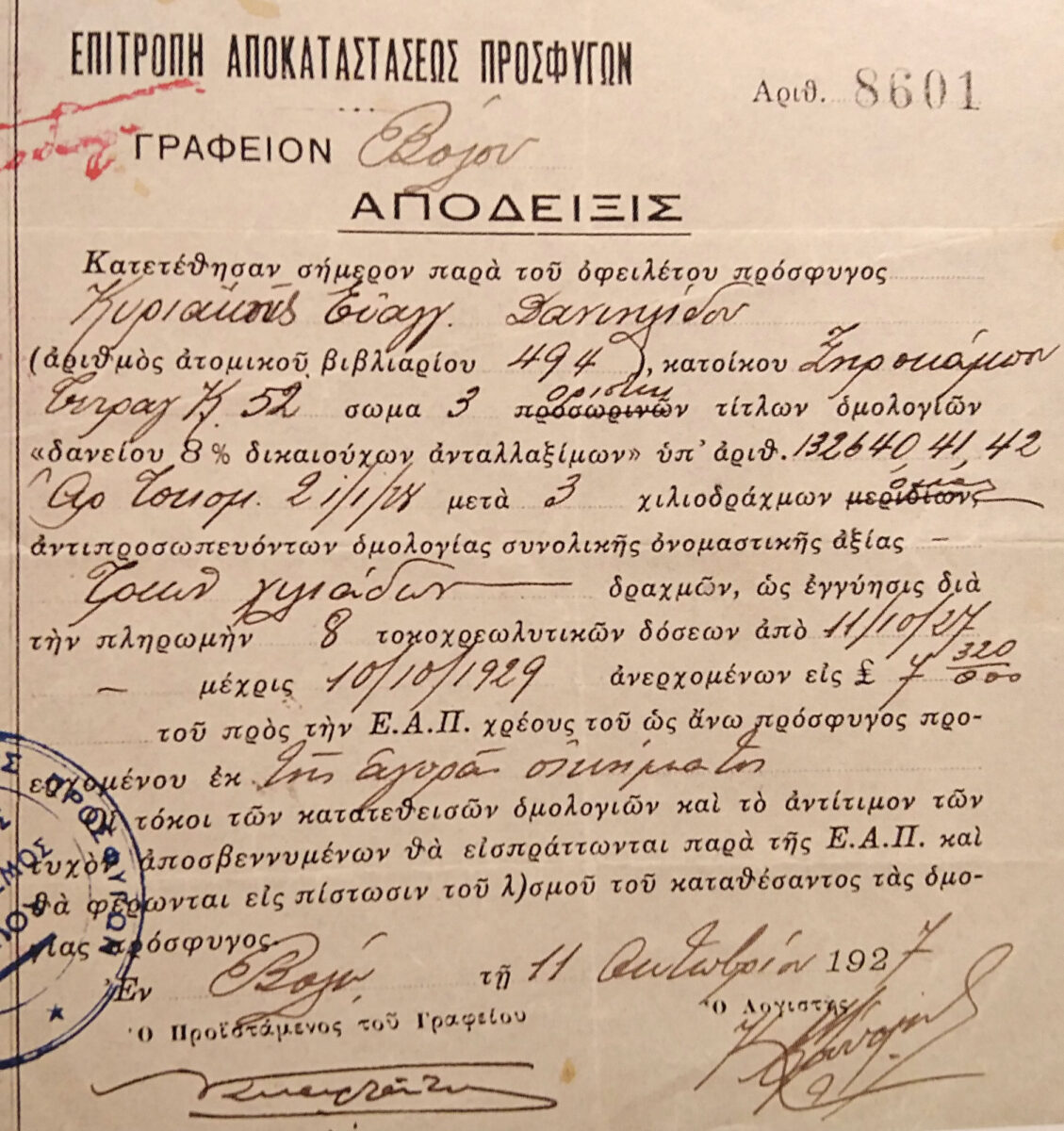 Παιδιά με τρομαγμένα βλέμματα, γυναίκες που κοιτούν με καχυποψία τον φακό και άνδρες με συγκρατημένο χαμόγελο. Επειδή γλύτωσαν τη σφαγή, αλλά ήρθαν στο άγνωστο. Άνθρωποι πολλοί σε φωτογραφίες κιτρινισμένες και έντυπα φθαρμένα από τον χρόνο, οικογενειακά βιβλιάρια προσφύγων, αποδείξεις της Επιτροπής Αποκατάστασης, χρεωστικά δελτάρια… Ένας ολόκληρος κόσμος είναι εδώ, μέσα στην έκδοση, και συντηρεί το ακριβό ιστορικό αρχείο του πληθυσμού, που ήρθε για να μείνει, να δουλέψει, να προκόψει, να ανοίξει δρόμους δημιουργίας.