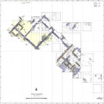 Το αρχιτεκτονικό σχέδιο και στις δύο φάσεις είχε κατεύθυνση από ΒΔ-ΝΑ. Ανασκάφηκαν δύο μεγάλες ορθογώνιες αίθουσες πολύ παρόμοιες με αυτές στην ανατολική πλευρά, με σκόρπια υλικά που υποδεικνύουν εργαστηριακές εγκαταστάσεις. Στη νότια πλευρά αποκαλύφθηκε μια μεγάλη αίθουσα που περικλείεται από τους τοίχους 403, 827, 804 και 402 με είσοδο στα βορειοανατολικά, ίσως προς το δρόμο. Στο εσωτερικό βρέθηκαν πέτρινες πλάκες τοποθετημένες κάθετα αλλά και άλλες πεσμένες, που πιθανόν να ανήκαν σε πέτρινη λεκάνη η οποία καταστράφηκε. Παρόμοια λεκάνη βρέθηκε στην ανατολική πλευρά σε πολύ καλή κατάσταση διατήρησης. Βρέθηκαν επίσης ακατέργαστες γύψινες πλάκες και πετρώματα που προφανώς μεταφέρθηκαν από αλλού για χρήση στις εργασίες που διεξάγονταν στο χώρο. Επιστρώσεις πηλού σε διάφορα σημεία υποδεικνύουν ότι πρέπει να υπήρχαν εστίες και μια μικρή υποδοχή στο έδαφος με πέτρες στον περίγυρο υποβάσταζε αποθηκευτικό αγγείο. Στην προηγούμενή του φάση αυτός ο χώρος συνδεόταν με το σύμπλεγμα στα νοτιοανατολικά με διάδρομο, ο οποίος διαμορφώθηκε αργότερα σε δρόμο.