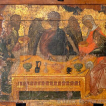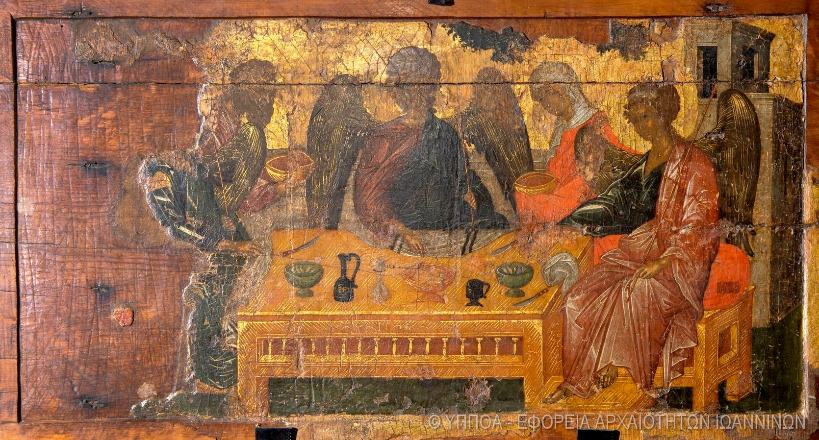 Με αφορμή τη λεπτομέρεια-απεικόνιση ενός μαχαιριού, μαζί με άλλα σκεύη εστίασης, στη σκηνή της «Φιλοξενίας του Αβραάμ» από εικόνα του 16ου αιώνα από την περιοχή της Άρτας, η αρχαιολόγος Βασιλική Δήμου έχει επιλέξει και σχολιάζει συνήθειες που σχετίζονται με το «βυζαντινό τραπέζι». Η εικόνα εκτίθεται στην Αίθουσα Γ του Βυζαντινού Μουσείου Ιωαννίνων.