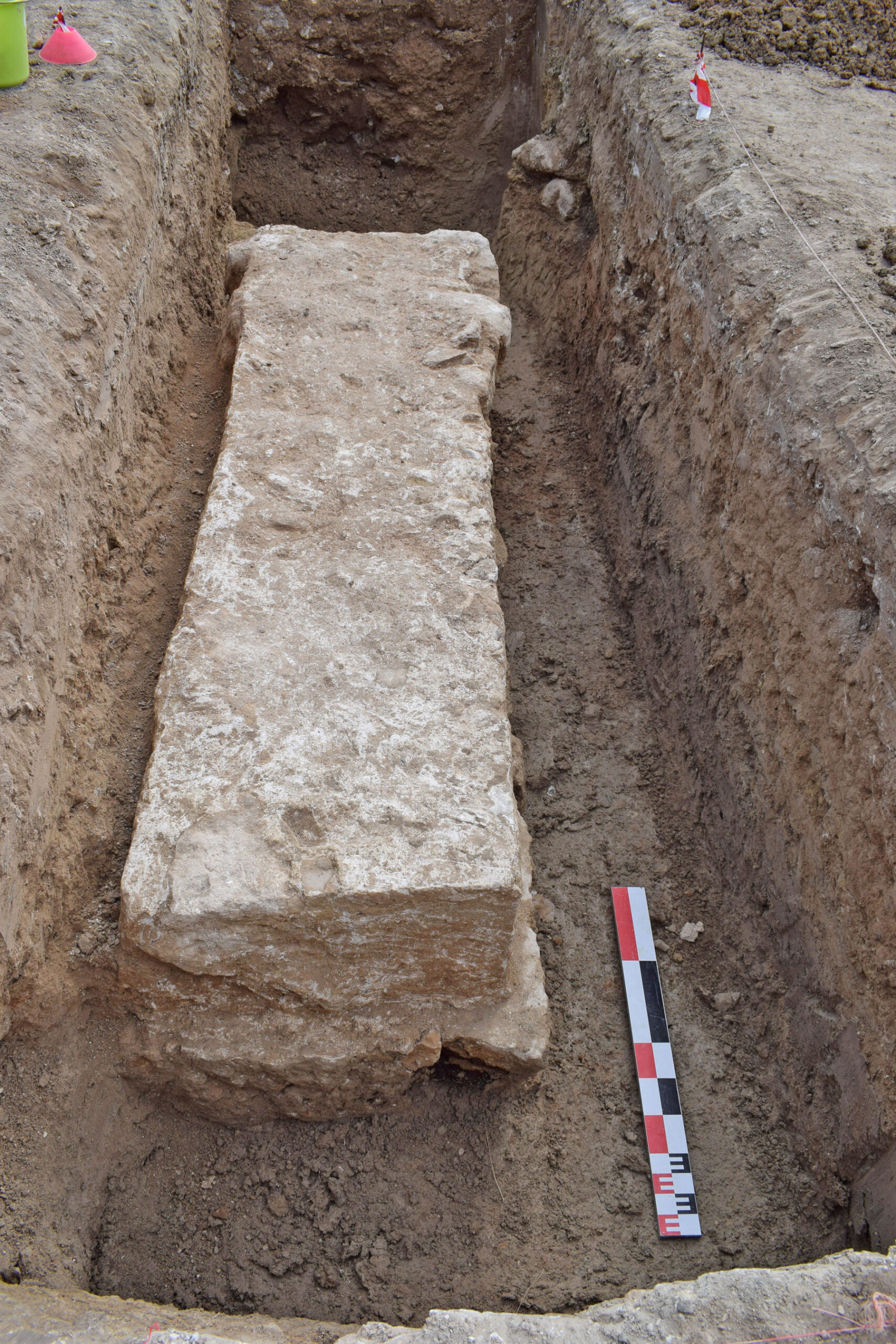 Οι ανασκαφές στα ανατολικά των χώρων φύλαξης των πλοίων έφεραν στο φως τουλάχιστον μία ακόμη ράμπα ανέλκυσης (εικ. 1) η οποία τεκμηριώνεται από τη βάση μιας κολόνας. Η βάση αυτή είναι κατασκευασμένη από ένα μεγάλο τμήμα ασβεστόλιθου το οποίο στηρίζεται σε μεγάλους ογκόλιθους (εικ. 2). Στα ανατολικά αποκαλύφθηκε τοίχος από πωρόλιθους ο οποίος συνδέεται με ακόμη μία πιθανή βάση που ίσως να λειτουργούσε ως τοίχος που έκλεινε το κτήριο. Ανατολικότερα, απομακρύνθηκαν νεότερες προσχώσεις.