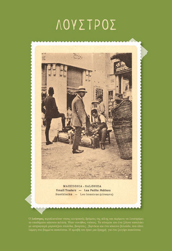 Το φωτογραφικό υλικό, με εικόνες από τις αγορές της πόλης και από χαρακτηριστικά αντικείμενα που χρησιμοποιούσαν οι επαγγελματίες της εποχής, συνοδεύεται από το κείμενο του επιμελητή Νίκου Μαραντζίδη, καθώς και από αποσπάσματα κειμένων λογοτεχνών και αρχιτεκτόνων σχετικά με το επαγγελματικό τοπίο της πόλης.