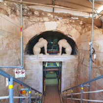 Καθώς έχουν ολοκληρωθεί όλες οι μελέτες, αρχίζουν, τον Απρίλιο, οι εργασίες συντήρησης εντός του ταφικού μνημείου. Παράλληλα, εξελίσσονται και οι εργασίες συντήρησης και συγκόλλησης των τμημάτων και των θραυσμάτων της μνημειώδους μακεδονικής θύρας που σφράγιζε τον τέταρτο χώρο του μνημείου, καθώς και οι αντίστοιχες εργασίες συντήρησης των φτερών των Σφιγγών της εισόδου. Ακολουθούν η κατασκευή του μόνιμου στεγάστρου στην είσοδο του μνημείου και η διδακτική αναστήλωση τμήματος του μαρμάρινου περιβόλου.
