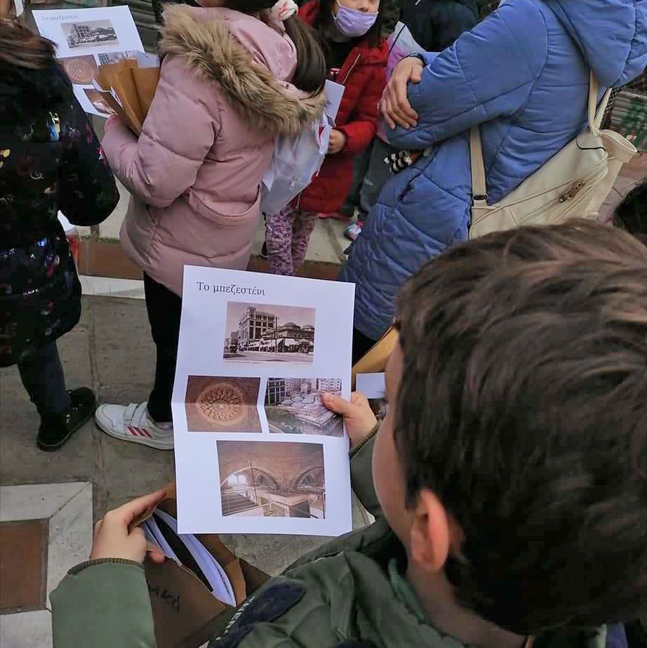 Πρωινό Κυριακής και οι έμποροι της αγοράς στο Μπεζεστένι απέχουν από την καθημερινή τους ρουτίνα. Ωστόσο, έξω από τα κλειστά καταστήματα της ιστορικής αγοράς της Θεσσαλονίκης, έχουν στηθεί πάγκοι που «πουλάνε» τα αντίστοιχα προϊόντα που αναγράφονται στις ταμπέλες των μαγαζιών. Κορδέλες, κουμπιά, υφάσματα, κλωστές «αγοράζονται» από… ανήλικους «πελάτες» και με τον τρόπο αυτό αντιλαμβάνονται πώς λειτουργούσαν τα 136 μαγαζιά στο συγκεκριμένο εμπορικό κέντρο, ποιοι ψώνιζαν από εκεί και συνειδητοποιούν ότι στο παρελθόν δεν αγοράζαμε έτοιμα ενδύματα, αλλά τα ράβαμε.