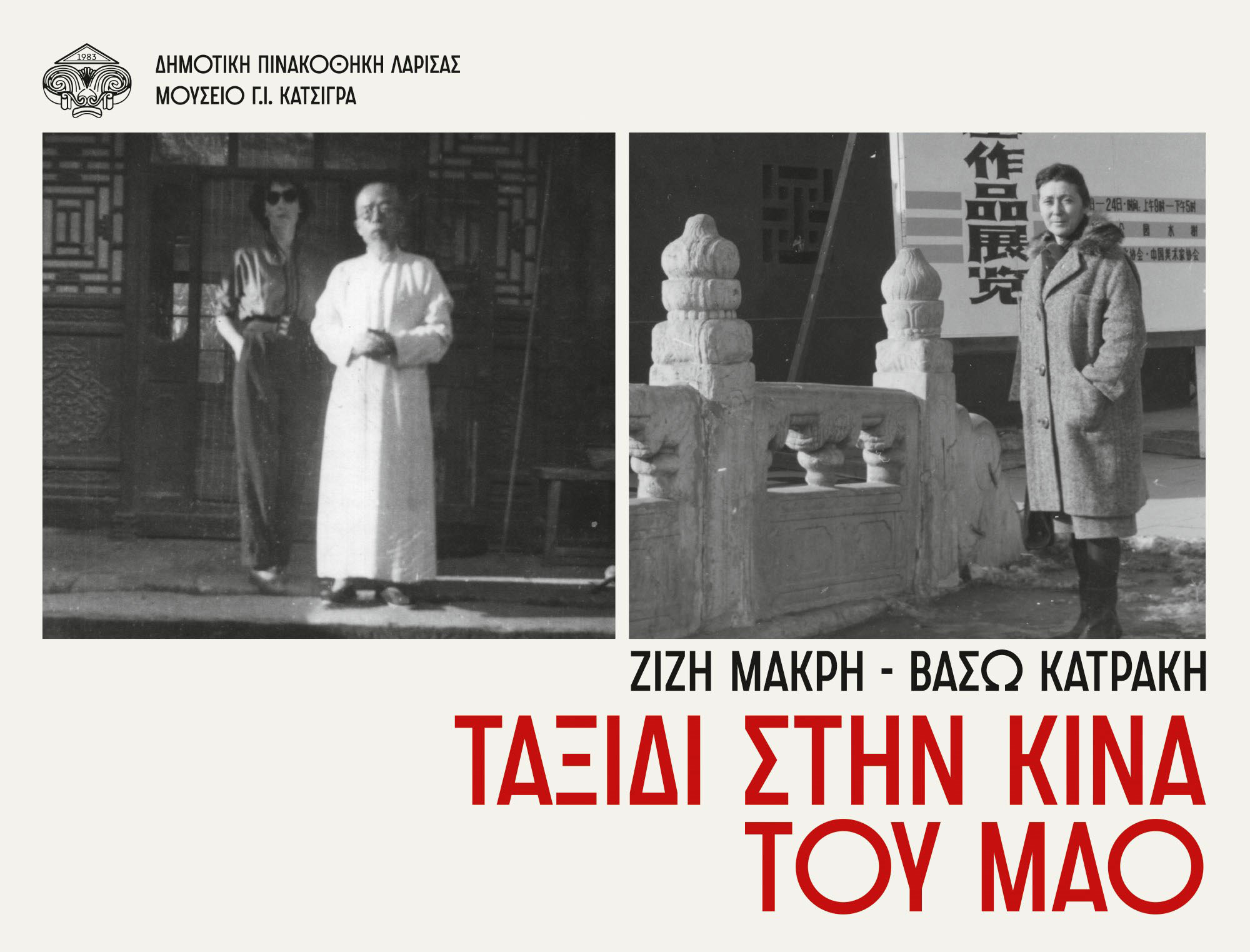Την Κυριακή 3 Απριλίου και ώρα 12:00, στο αίθριο του πρώτου ορόφου της Δημοτικής Πινακοθήκης Λάρισας-Μουσείου Γ. Ι. Κατσίγρα θα εγκαινιαστεί έκθεση με τίτλο «Ζιζή Μακρή – Βάσω Κατράκη: Ταξίδι στην Κίνα του Μάο» σε επιμέλεια του Σπύρου Μοσχονά, ιστορικού της τέχνης.
