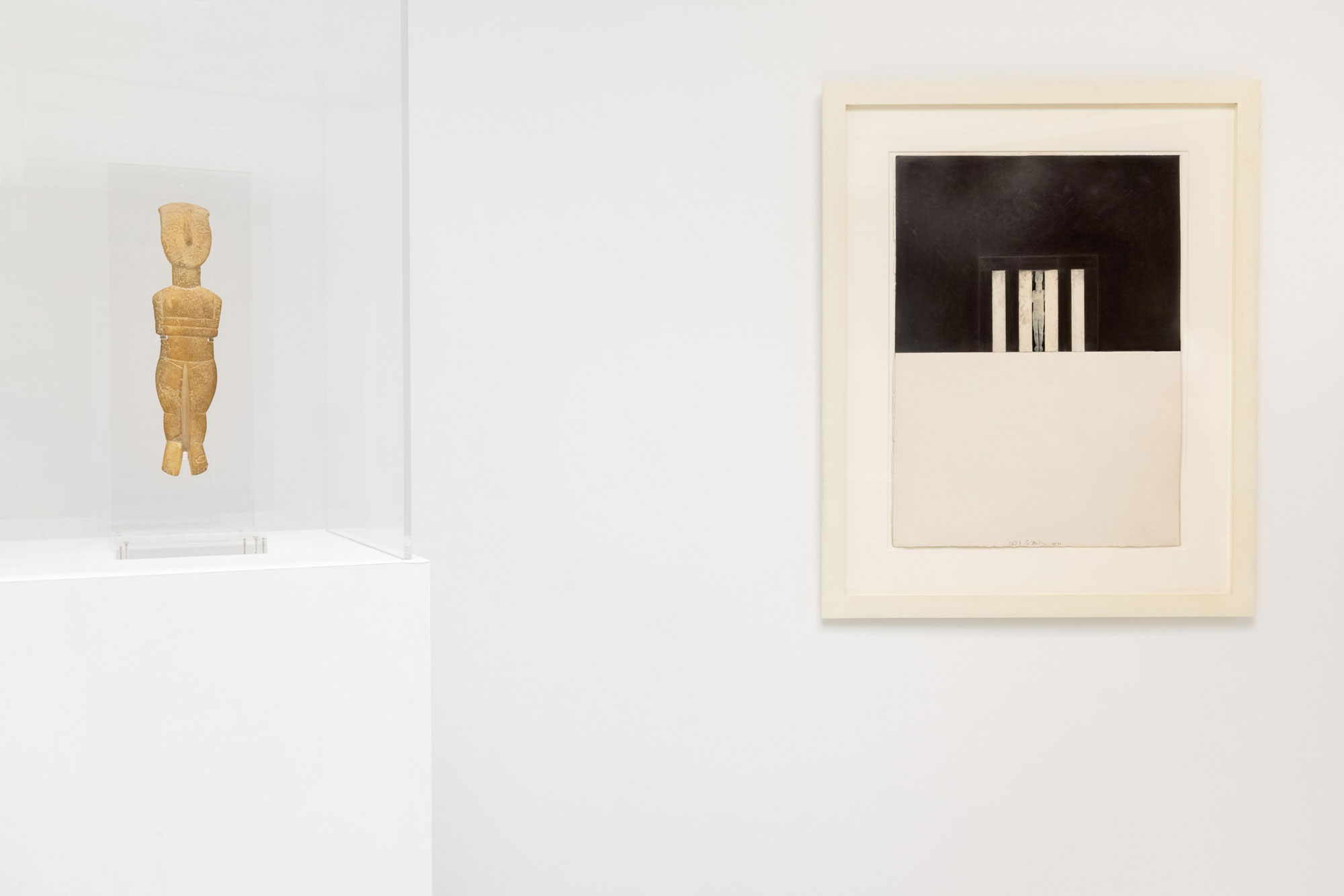 Οι 16 αρχαιότητες που πλασιώνουν τα έργα του Marden προέρχονται από τις συλλογές των κυκλαδικών, κυπριακών και αρχαίων ελληνικών αρχαιοτήτων του Μουσείου Κυκλαδικής Τέχνης. Πρόκειται για αρχαιότητες φτιαγμένες από πηλό, μάρμαρο και χρυσό, που καλύπτουν ένα χρονικό φάσμα τεσσάρων χιλιάδων περίπου χρόνων, από το τέλος της 4ης χιλιετίας π.Χ. έως τους χρόνους του Βυζαντίου και προορίζονταν για καθημερινή, τελετουργική ή, ακόμα, και ταφική χρήση.