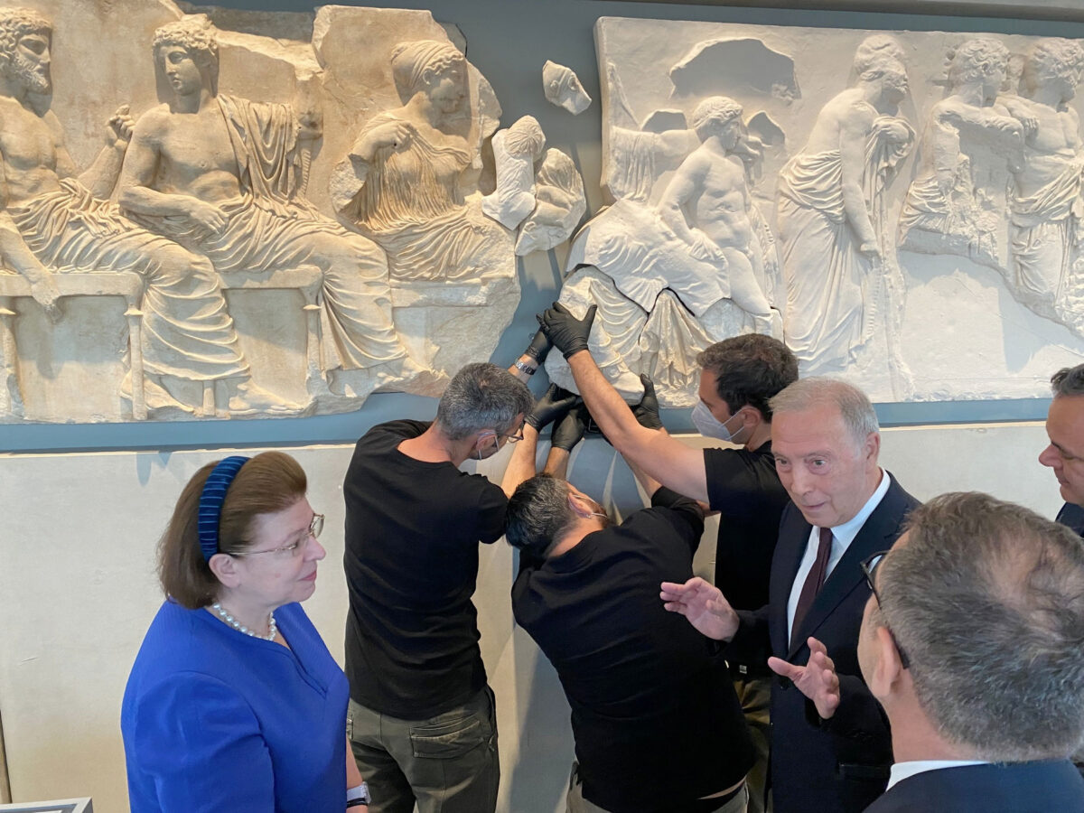 Ο Γενικός Διευθυντής του Μουσείου της Ακρόπολης, καθηγητής Νίκος Σταμπολίδης τόνισε: «Σε έναν κόσμο που οι οικονομικές κρίσεις, οι πανδημίες και οι πόλεμοι αυξάνουν την αβεβαιότητα και την ανησυχία και οι αξίες της Δημοκρατίας αμφισβητούνται, το μικρό κομμάτι από το Παλέρμο, που ενώνεται σήμερα για πάντα στον λίθο VI της ανατολικής ζωφόρου, είναι στην πραγματικότητα ένα τεράστιο κομμάτι, ένας ακρογωνιαίος λίθος στον συμβολισμό του».