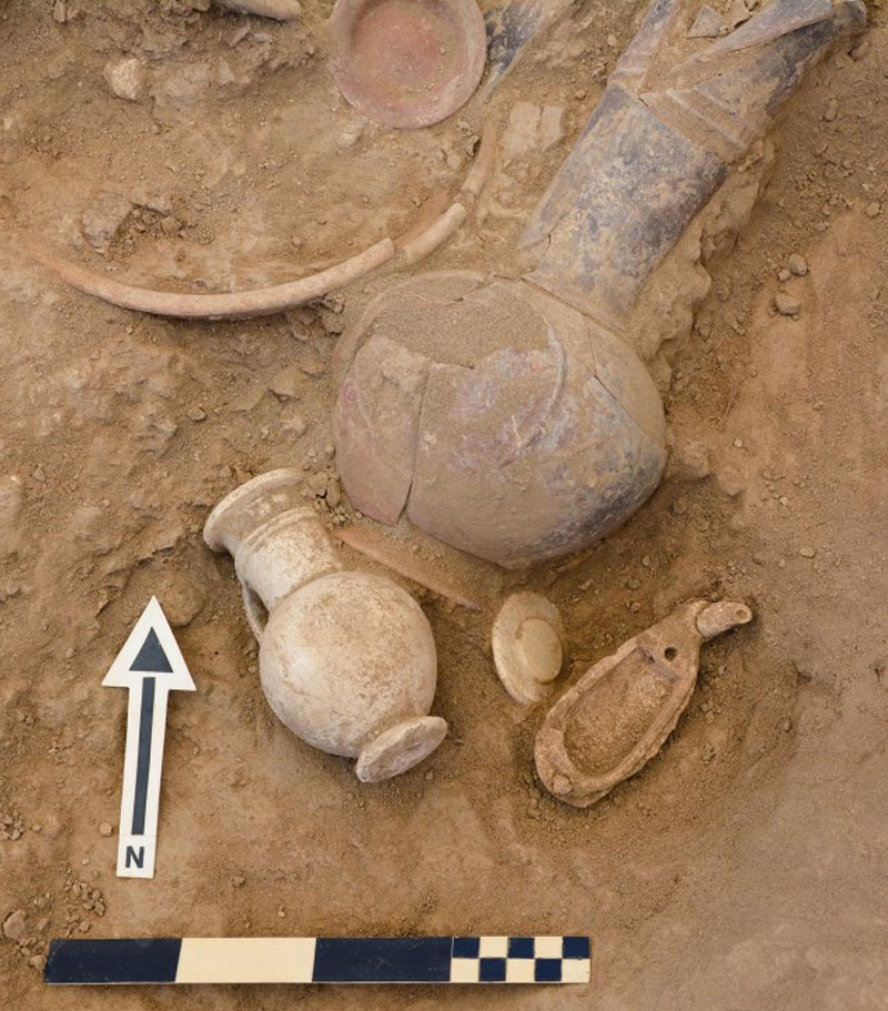 Οι δύο τάφοι, προφανώς οικογενειακοί τάφοι με μεγάλο αριθμό ενταφιασμένων ατόμων στον καθένα, ήταν λαξευμένοι στο χώμα. Η μελέτη των ανθρωπολογικών καταλοίπων δεν έχει ακόμα ολοκληρωθεί. Επομένως, ο υπολογισμός του αριθμού των ατόμων, το φύλο και η ηλικία θανάτου τους χρειάζεται περαιτέρω διερεύνηση. Είναι, ωστόσο, πεποίθησή μας ότι οι τάφοι ανήκαν σε δύο πλούσιες οικογένειες, κρίνοντας από το είδος των ευρημάτων. Νεογνά, βρέφη, νεαρά και ηλικιωμένα άτομα συνδέονταν με μεγάλο αριθμό κτερισμάτων. Ως «ηλικιωμένοι» αναφέρονται άτομα που σπάνια ξεπερνούσαν τα 40 έτη, καθώς το προσδόκιμο ζωής ήταν χαμηλό αυτή την περίοδο.