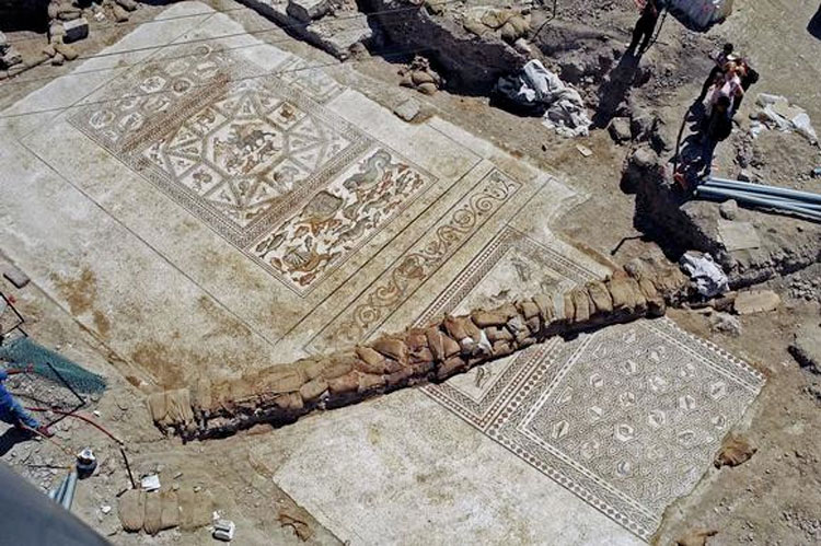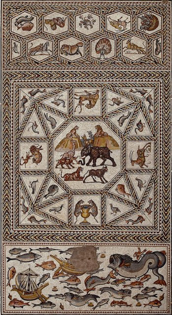 Αυτό το εξαιρετικό ψηφιδωτό αποκαλύφθηκε το 1996 σε βάθος δύο μέτρων, κατά τη διάρκεια αρχαιολογικών ανασκαφών. Η κατάσταση στην οποία έχει διατηρηθεί είναι άριστη.Έχει διαστάσεις σχεδόν 17 μέτρα μήκος επί 9 μέτρα πλάτος και έχει έναν πλούσιο διάκοσμο με ζώα, μέσα σε γεωμετρικό πλαίσιο.