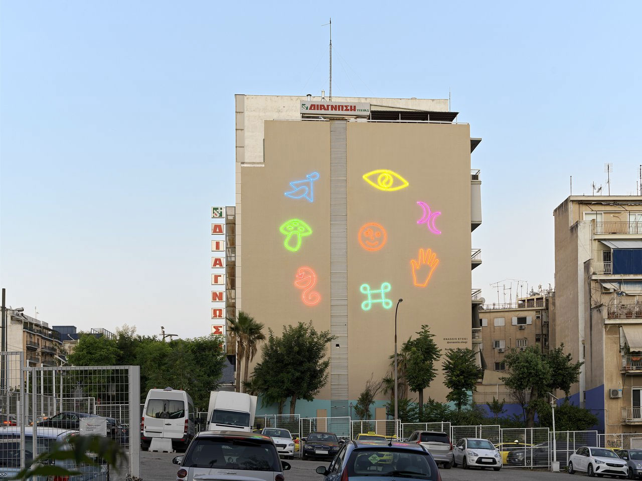 Η Στέγη του Ιδρύματος Ωνάση παρουσιάζει το νέο έργο του Άγγελου Πλέσσα, «Φυλαχτό όλων των Όντων», μια in situ εγκατάσταση από νέον, μια νέα τοιχογραφία-φυλαχτό για όλους μας. Τοποθετημένη σε ένα κτίριο στη Λεωφόρο Αλεξάνδρας, απέναντι από το αντικαρκινικό νοσοκομείο «’Αγιος Σάββας», η εγκατάσταση του Πλέσσα λειτουργεί σαν ένα φυλαχτό για την πόλη και τους κατοίκους της. Όπως αναφέρει το δελτίο Τύπου της Στέγης: «Η εγκατάσταση αποτελείται από μια κόκκινη χαμογελαστή φατσούλα (emoji), η οποία περιβάλλεται από επτά σύμβολα σε κυκλική διάταξη. Τα σύμβολα αυτά, που ο καλλιτέχνης έχει αντλήσει από διάφορους πολιτισμούς του κόσμου, μεταφέρουν ένα μήνυμα αγάπης, ελπίδας και αισιοδοξίας ως αντίδοτο σε έναν κατακερματισμένο κόσμο, όπου κυριαρχούν η αποξένωση, η αλλοτρίωση, η μοναξιά και η απώλεια. Κοιτώντας τις φωτεινές ακτίνες που εκπέμπουν ένα πράσινο μανιτάρι, ένα μπλε πουλί, ένα κίτρινο yin yang μάτι, ένα διπλό ροζ φεγγάρι, ένα πορτοκαλί χέρι, ένα κυκλικό τετράγωνο (το σύμβολο command στα πληκτρολόγια της Apple) και ένα μοβ φίδι με ποτήρι, οι περαστικοί γεμίζουν με θετικές σκέψεις και συναισθήματα, αποβάλλοντας το στρες της ημέρας. Το έργο έχει αποτροπαϊκό χαρακτήρα, συνομιλώντας έμμεσα με τα περίαπτα που συναντάμε ως μενταγιόν ή κτερίσματα σε τάφους, καθώς και με τα περιάμματα, τις βαμμένες κλωστές που φορούσαν στο σώμα τους οι μύστες των αρχαίων τελετουργιών. Τη νύχτα, το έργο του Πλέσσα έχει ακόμα πιο έντονη επίδραση: η μυσταγωγική ατμόσφαιρα που δημιουργεί, σε συνδυασμό με μια παγανιστική διάθεση, αποκαλύπτει τον τελετουργικό του χαρακτήρα και τις ιαματικές του ιδιότητες».