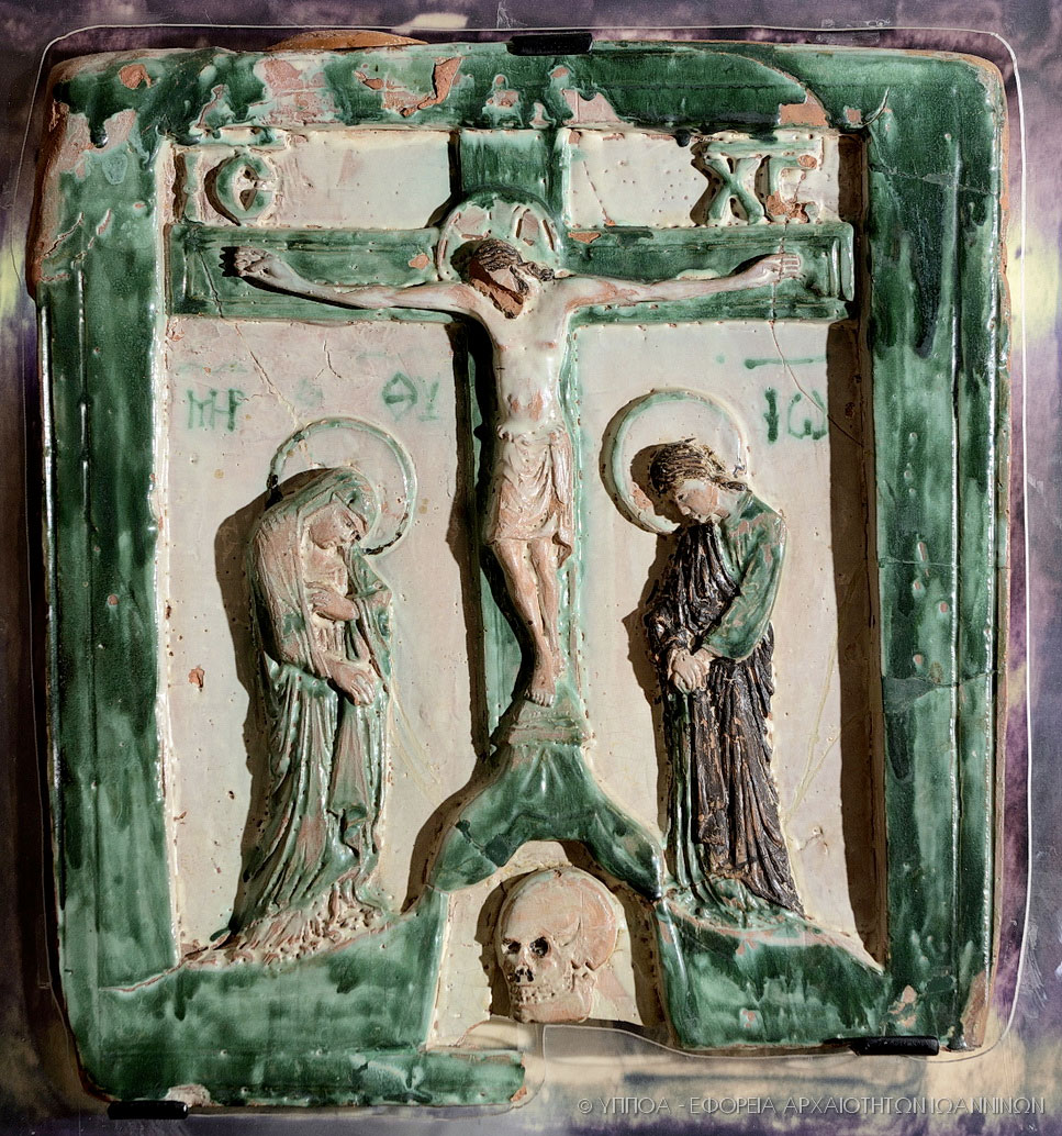 Συμπεράσματα που στηρίζονται σε ανάλογες αρχαιομετρικές αναλύσεις και συνδέονται με την τεχνολογία κατασκευής μίας πήλινης ανάγλυφης εικόνας με εφυάλωση και με το θέμα της Σταύρωσης (14ος-15ος αι.) από τον ναό του Αγ. Βασιλείου στην Άρτα σχολιάζει η αρχαιολόγος Σταματία Κορτζή. Τα εξειδικευμένα αποτελέσματα υποδεικνύουν πιθανόν τη λειτουργία τοπικών εργαστηρίων παραγωγής που αντλούσαν από μια παράδοση δυτικής προέλευσης τεχνικών, με τις οποίες ωστόσο πειραματίζονταν ή και τις ανανέωναν οι τεχνίτες, σε μια περίοδο στενών επαφών της Ηπείρου ιδίως με την ιταλική χερσόνησο. Η εικόνα, η οποία μαζί με μία ακόμη αντίστοιχης τεχνικής κοσμούσε εξωτερικό τοίχο του ναού, εκτίθεται στην αφιερωμένη στους βυζαντινούς χρόνους Αίθουσα Β του Βυζαντινού Μουσείου Ιωαννίνων.