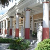 Αυτή τη μαγική εικόνα που σε παρασύρει σε άλλες εποχές που θυμίζουν παραμύθι, ανακαλύπτει όποιος επισκεφθεί το ανάκτορο Αχίλλειον στην Κέρκυρα, ένα από τα αρχιτεκτονικά αριστουργήματα του νησιού. Σε αυτή την πανέμορφη έπαυλη που αγόρασε και ανακαίνισε η πριγκίπισσα Σίσσυ, βλέπεις την οπτασία της να περιφέρεται στους κήπους, ανάμεσα στα γλυπτά και τα αγάλματα ηρώων της ελληνικής μυθολογίας και του πολυαγαπημένου της Αχιλλέα.