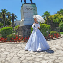 Τη βλέπεις να περνά δίπλα σου, κρατώντας τη δαντελένια λευκή ομπρέλα της που ρίχνει σκιά στο πρόσωπό της για να αποφύγει τις καυτές ακτίνες του ήλιου. Το βάδισμά της είναι αθόρυβο, ακούς μόνο τον ελαφρύ κυματισμό που κάνει το βαρύ, κεντημένο, κατάλευκο φόρεμά της που φέρει όλη τη λάμψη της αγαπημένης πριγκίπισσας των Κερκυραίων, της Σίσσυ, όπως την αποκαλούσαν, γνωστή ευρέως ως αυτοκράτειρα Ελισάβετ της Αυστρίας.