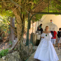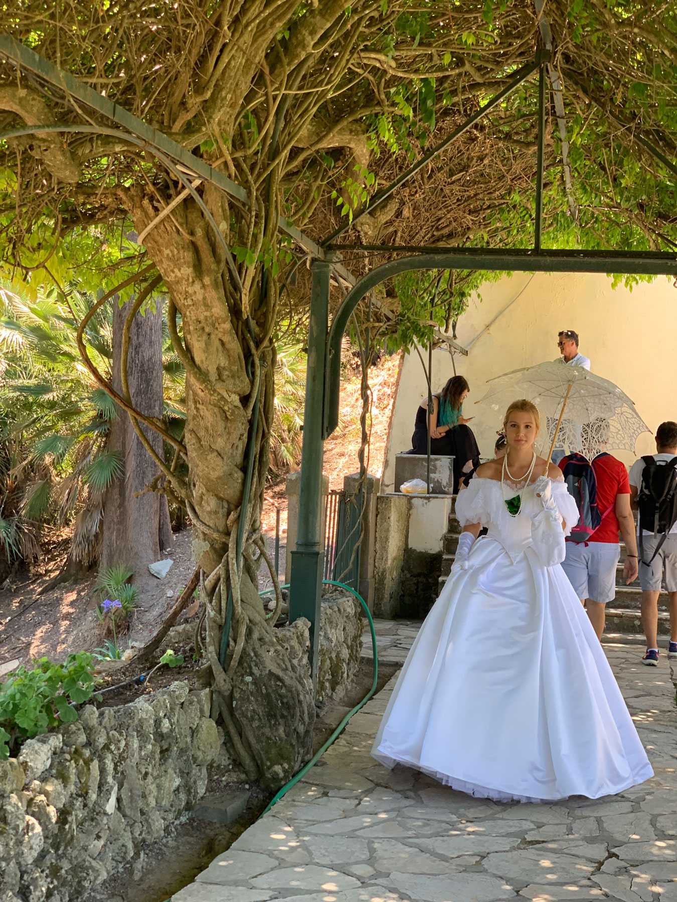«Στο εξωτερικό αυτό είναι πολύ διαδεδομένο και οι τουρίστες το καταλαβαίνουν και εναρμονίζονται απόλυτα με το κλίμα» θα πει η νεαρή φοιτήτρια που φορά μία από τις πολυαγαπημένες τουαλέτες της πριγκίπισσας, το «λευκό φόρεμα».