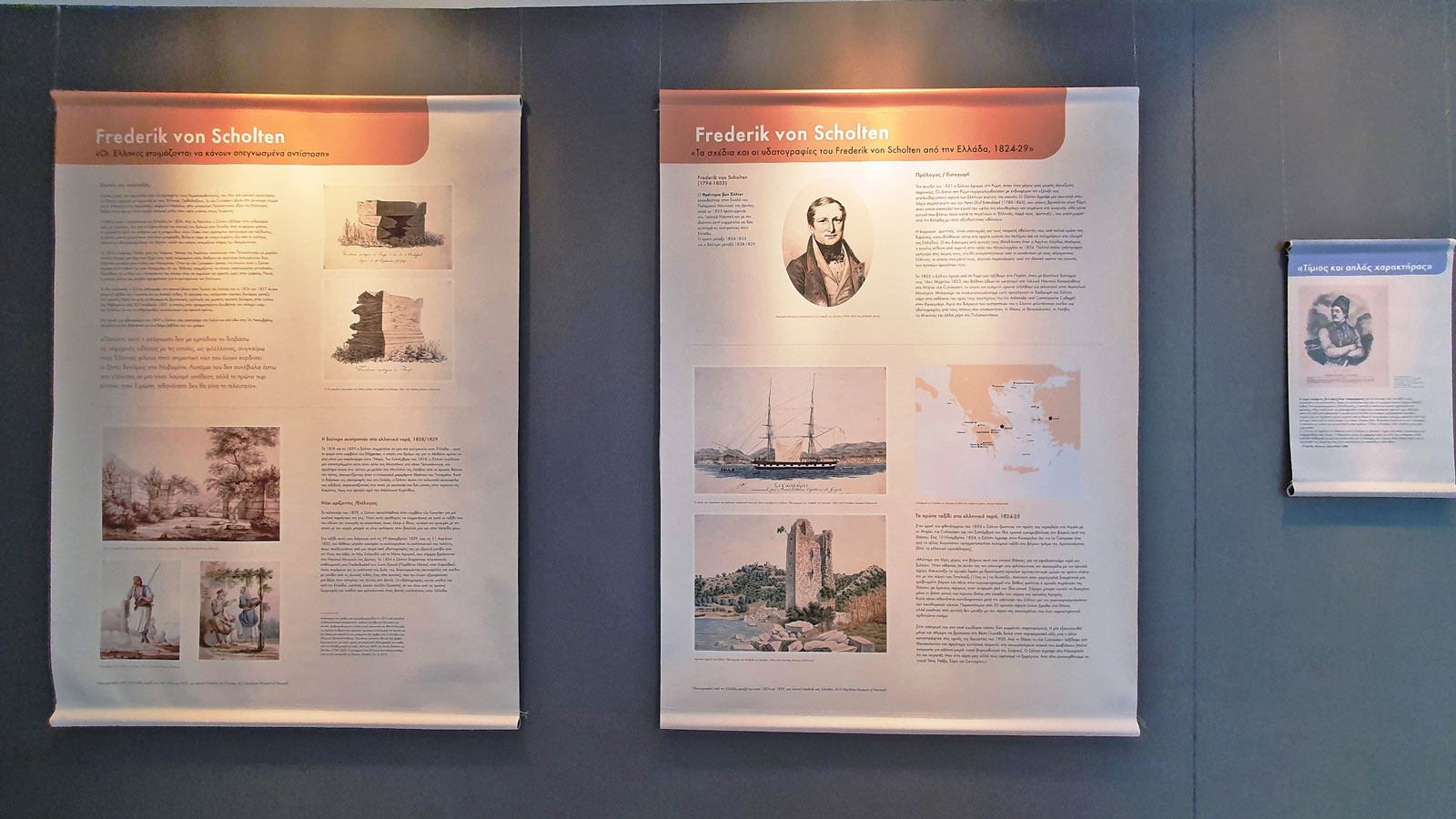 Χάρη στη δραστήρια διευθύντρια του Σουηδικού Σπιτιού στην Καβάλα, Elisabeth Gullberg, μέσα από την επιμέλεια και τη μετάφραση ενός συγγράμματος του Εθνικού Μουσείου της Δανίας έγινε ευρέως γνωστή η δράση του Frederik von Scholten. Στην έκθεση παρουσιάζονται όλες οι ακουαρέλες που ζωγράφισε κατά την παραμονή του στο νησί. Επίσης, με πρωτοβουλία της διευθύντριας της Εφορείας Αρχαιοτήτων Καβάλας Σταυρούλας Δαδάκη, εκτίθενται ανάγλυφα και αρχιτεκτονικά μέλη του βυζαντινού οχυρωματικού πύργου που ήταν εντοιχισμένα σε αυτόν και μετά την κατεδάφισή του περισυλλέχτηκαν, διασώθηκαν και έκτοτε φυλάσσονται στο Aρχαιολογικό Mουσείο της Θάσου.