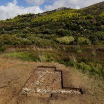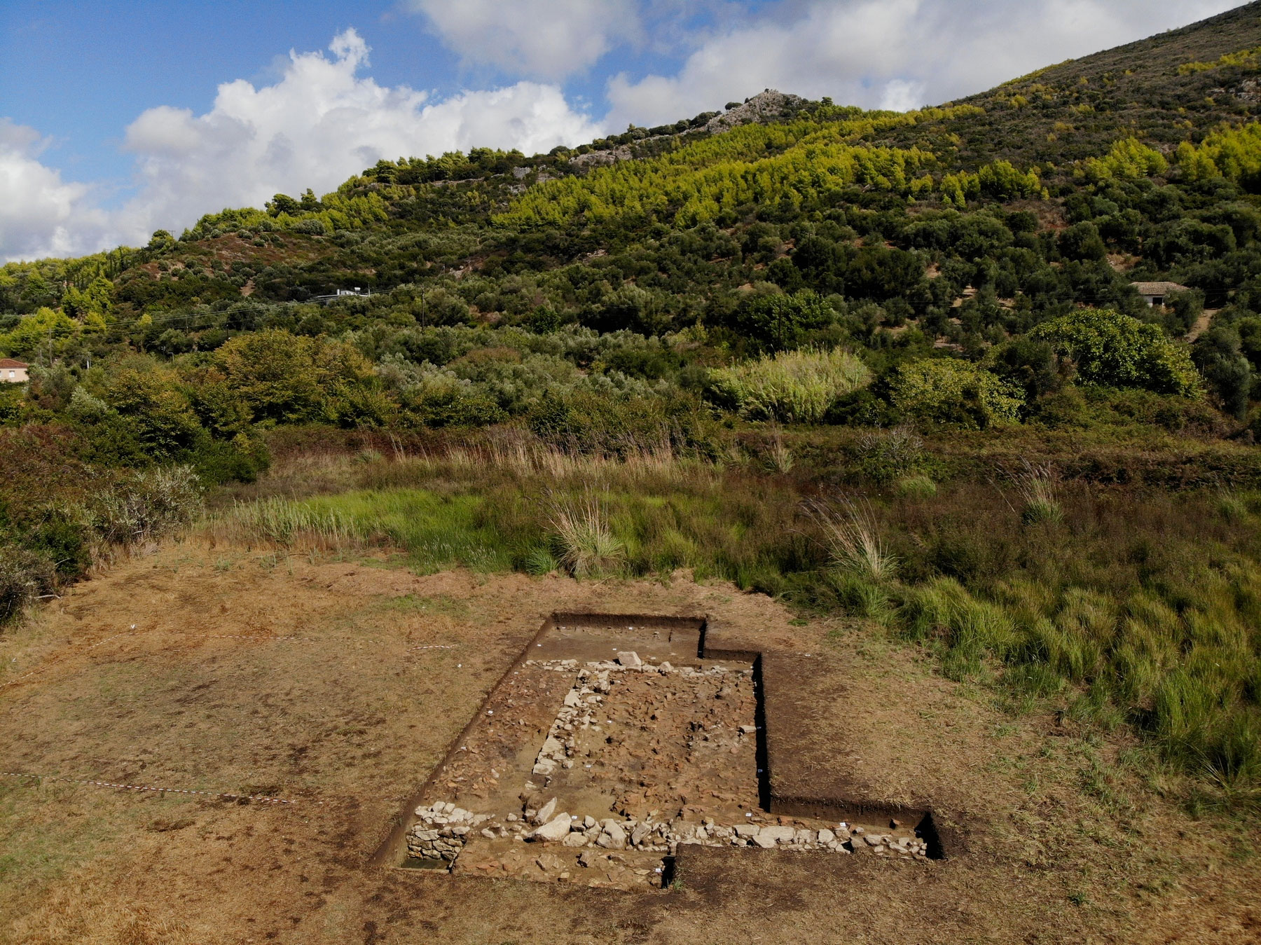 Οι ανασκαφικές εργασίες ολοκληρώθηκαν στα τέλη Σεπτεμβρίου και κατά τη διάρκειά τους αποκαλύφθηκε τμήμα της θεμελίωσης ενός μεγάλου κτηρίου πλάτους 9,40 μ., του οποίου οι τοίχοι έχουν πλάτος 0,80 μ. Στο εσωτερικό του εντοπίστηκε πυκνό στρώμα κεραμίδων. Με βάση τις ενδείξεις της γεωφυσικής έρευνας και τα ανασκαφικά δεδομένα, μπορεί να ανασυντεθεί κτήριο μήκους τουλάχιστον 28 μ., το οποίο διέθετε δύο εσωτερικές αίθουσες, καθώς και έναν πρόναο και έναν οπισθόδομο ή άδυτο. Το επίμηκες ναόσχημο κτήριο πιθανότατα ανήκε στο ιερό του Ποσειδώνα και ίσως ταυτίζεται με το ναό του θεού.