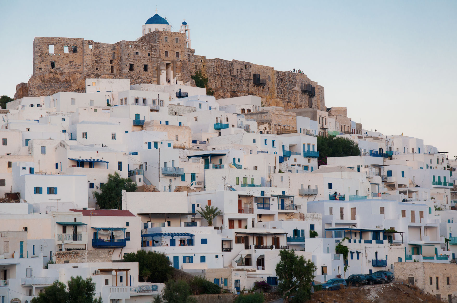 Μέσα στο κάστρο βρίσκονται οι περίφημες εκκλησίες με τα πέτρινα καμπαναριά, της Παναγιάς του Κάστρου (1853) και του Αγίου Γεωργίου (1790). Το κάστρο βρίσκεται στην κορυφή υψώματος γύρω από το οποίο αργότερα αναπτύχθηκε η Χώρα, σε πλάτωμα με έκταση 4 στρέμματα.
