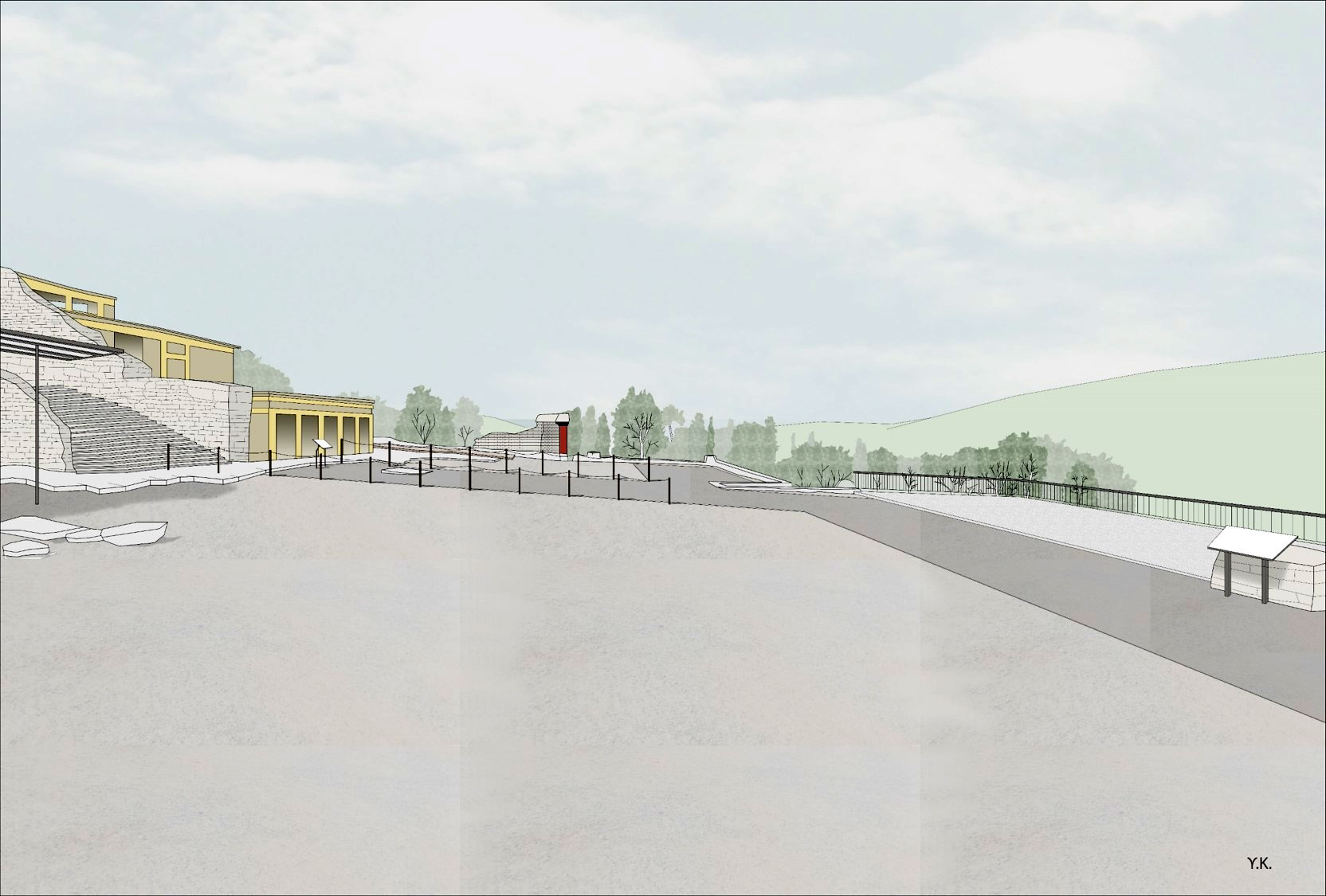 Η εγκριθείσα αρχιτεκτονική μελέτη αφορά στη διαμόρφωση νέων πορειών από τη Δυτική Αυλή προς το «Θέατρο», στην Κεντρική Αυλή, καθώς και στα «Μέγαρα Βασιλέως και Βασίλισσας» για την περιήγηση όλων των επισκεπτών. Η νέα πορεία στην Κεντρική Αυλή επιτρέπει την περιήγηση των ΑμεΑ  καθώς και την πρόσβασή τους στους γύρω χώρους, με τον περιορισμό της κίνησης των λοιπών επισκεπτών, χωρίς, όμως, να αποκλείεται η ελεύθερη περιήγησή τους. Η πρόσβαση στην περιοχή των «Μεγάρων Βασιλέως και Βασίλισσας» γίνεται μέσω κλίμακας νότια του «Μεγάρου Βασίλισσας». Στόχος της διαμόρφωσης νέας πορείας περιήγησης στο «Μέγαρο Βασιλέως» είναι ο χώρος αυτός να καταστεί μερικώς επισκέψιμος, και ταυτόχρονα, να προστατευθούν τα αρχαία δάπεδα. Επεμβάσεις προβλέπονται και σε επίπεδο ανακατασκευής δαπέδων, στα οποία περιλαμβάνονται το δάπεδο της περιοχής υποδοχής και εισόδου στον αρχαιολογικό χώρο, καθώς και οι διάδρομοι της κεντρικής Αυλής, νότια της δυτικής Αυλής, ανατολικά του «Θεάτρου» και της εξόδου από το Ανάκτορο.