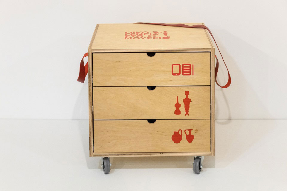 Κάθε Family kit κρύβει στα συρτάρια του χάρτες-κατόψεις με σταθμούς για την κάθε έκθεση, αντίγραφα εκθεμάτων, κάρτες με πληροφορίες γι’ αυτά και ένα σημειωματάριο με προτάσεις για δραστηριότητες, που προσφέρεται σε κάθε οικογένεια για να το χρησιμοποιήσει κατά τη διάρκεια της επίσκεψης ή και στο σπίτι.