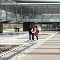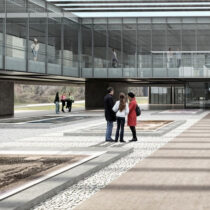 Ως προς τη λειτουργική οργάνωση των χώρων, το υπόγειο αναπτύσσεται σε δύο στάθμες. Στην κατώτερη στάθμη διαμορφώνονται, μεταξύ άλλων, τρεις διακριτοί βασικοί χώροι αποθήκευσης κεραμικών, ψηφιδωτών και γλυπτών, μικρότεροι χώροι αποθήκευσης ανασκαφικών ευρημάτων, ένα θησαυροφυλάκιο, ο κεντρικός ανελκυστήρας. Στη δεύτερη στάθμη τοποθετείται το μηχανοστάσιο κλιματισμού, το κεντρικό κλιμακοστάσιο, χώροι υγιεινής, το γραφείο του φυλακτικού προσωπικού και ο θάλαμος ελέγχου. Το ισόγειο αναπτύσσεται και αυτό σε δύο στάθμες. Στην κατώτερη στάθμη δημιουργούνται οι χώροι παράλληλων εκδηλώσεων και περιοδικών εκθέσεων, το Cafe, το πωλητήριο, χώροι εξυπηρέτησης του κοινού. Στην ανώτερη στάθμη του ισογείου αναπτύσσονται η κύρια αίθουσα εκθέσεων, χώροι μελέτης, εργαστήρια και χώροι υγιεινής, ενώ υπάρχει σύνδεση με τον εξωτερικό χώρο. Στον α’ όροφο, στην προσθήκη του υφισταμένου εργοστασίου της ΧΥΜΟΦΙΞ, οι λειτουργίες περιλαμβάνουν τα τέσσερα κλιμακοστάσια, τους ανελκυστήρες, WC κοινού και ΑμεΑ, δύο αποθήκες εκθεσιακών αντικειμένων και χώρους μόνιμων εκθέσεων. Η προσθήκη συνδέεται με τον όροφο του παλαιού εργοστασίου της ΧΥΜΟΦΙΞ. Ο α’ όροφος της ΧΥΜΟΦΙΞ περιλαμβάνει αίθουσα εκπαιδευτικών δραστηριοτήτων, WC γραφείων, κλιμακοστάσια και δύο ανελκυστήρες. Τέλος, ο χώρος της υφισταμένης δεξαμενής φιλοξενεί μηχανολογικές εγκαταστάσεις. Η μελέτη προβλέπει την εκμετάλλευση του πρώην λεβητοστασίου της ΧΥΜΟΦΙΞ, το οποίο είναι ανεξάρτητη κατασκευή. Στο ισόγειό του διαμορφώνονται γραφεία, WC, κουζίνα, κλιμακοστάσιο και ανελκυστήρας. Στη στάθμη του ορόφου διαμορφώνονται ξενώνας, γραφεία, χώρος αρχείου επιστημονικών τεκμηριώσεων και κλιμακοστάσιο με ανελκυστήρα.
