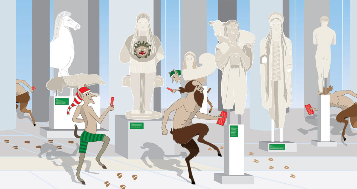 Φέτος τα Χριστούγεννα καλικάντζαροι εισβάλλουν στο Μουσείο Ακρόπολης! Εκεί συναντούν διάφορα σκανταλιάρικα πλάσματα της αρχαιότητας, όπως τους Σατύρους και τον Πάνα και… ανακατεύουν τις λεζάντες των εκθεμάτων, με αποτέλεσμα οι επισκέπτες να παίρνουν λάθος πληροφορίες!
