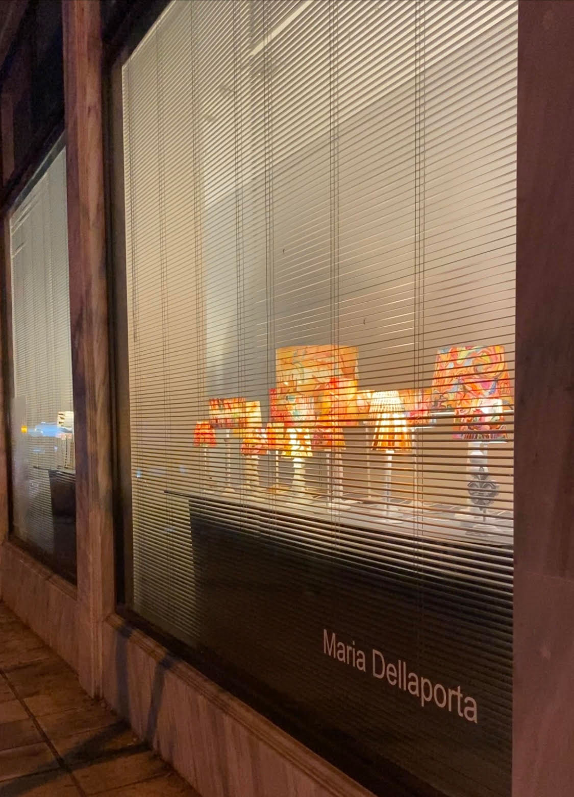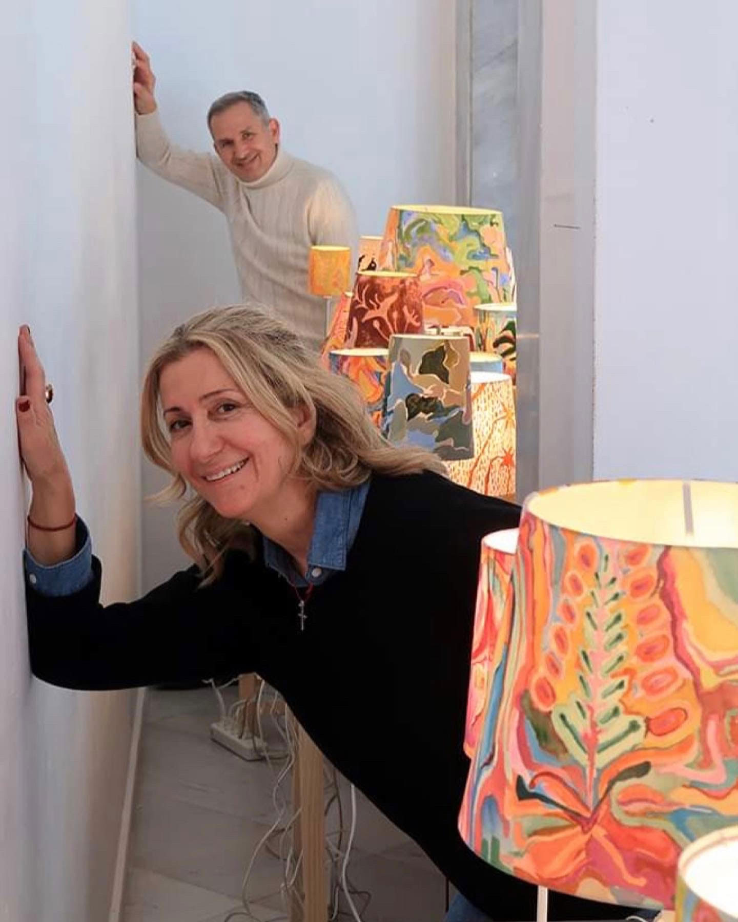 «Πριν από τρία χρόνια μετακομίσαμε οικογενειακώς στη Σουηδία, όπου ο άντρας μου εργάζεται ως γιατρός. Πηγαίνοντας κι εγώ εκεί, έπεσα πάνω στην περίοδο της πανδημίας, κάτι που επηρέασε την ψυχολογία μου. Ταυτόχρονα παρατήρησα ότι οι Σουηδοί έχουν μεγάλη λατρεία στα φωτιστικά και γενικά αγαπούν πάρα πολύ το φως, γιατί το στερούνται τον χειμώνα», δηλώνει στο Αθηναϊκό/Μακεδονικό Πρακτορείο Ειδήσεων η Μαρία Δελλαπόρτα, η οποία αγόρασε επίσης ένα φωτιστικό από ένα second-hand μαγαζί της Στοκχόλμης. «Την περίοδο εκείνη προετοίμαζα την πρώτη μου ατομική έκθεση στη Σουηδία και πειραματίστηκα πάνω σε αυτό το φωτιστικό, το οποίο το είδα σαν έναν μικρό καμβά και όχι σαν αμπαζούρ», εξηγεί.