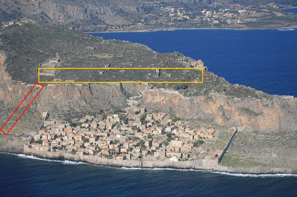 Το έργο εκτελείται με Προγραμματική Σύμβαση μεταξύ του Υπουργείου Πολιτισμού και Αθλητισμού, του Δήμου Μονεμβασίας και της Αναπτυξιακής «ΠΑΡΝΩΝΑΣ Α.Ε.».  Τα συνοδά έργα επί των μνημείων υλοποιούνται από τη Διεύθυνση Αναστήλωσης Βυζαντινών και Μεταβυζαντινών Μνημείων και την Εφορεία Αρχαιοτήτων Λακωνίας.