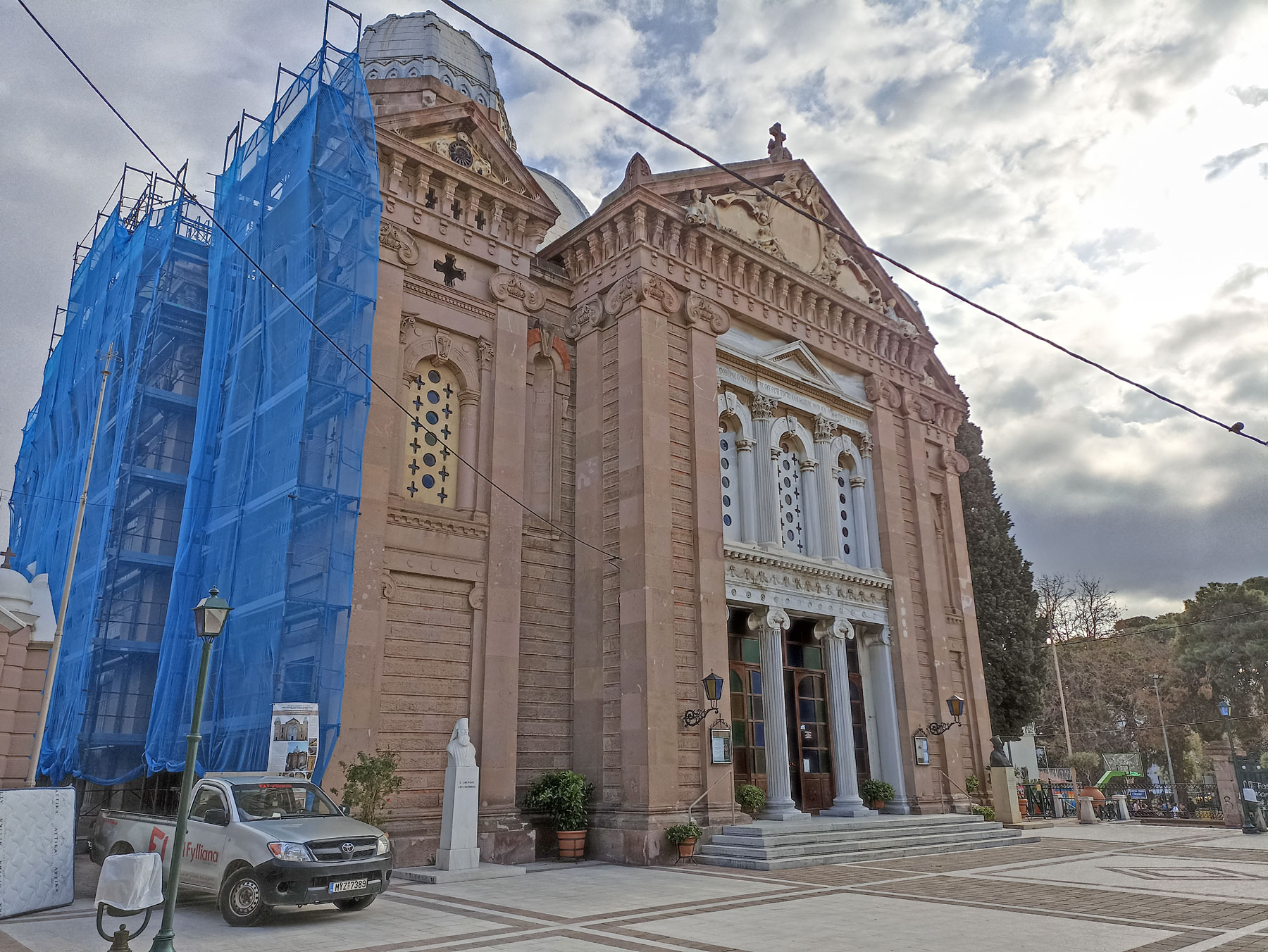 Με σχεδόν 2,5 εκατομμύρια ευρώ οι υπηρεσίες του υπουργείου Πολιτισμού πραγματοποιούν ένα έργο δύσκολο όσο και αναγκαίο, αφού αφορά τον ναό-μνημείο του Αγίου Θεράποντα, ο οποίος περίπου 130 χρόνια τώρα αποτελεί το σήμα κατατεθέν της Μυτιλήνης.