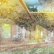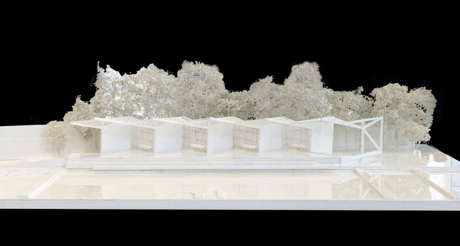 Η παρέμβαση αφορά στην εγκατάσταση στο νότιο τμήμα του αρχαιολογικού χώρου ενός περιπτέρου, το οποίο θα στεγάζει τέσσερις διαδραστικές οθόνες αφής, με πρόσβαση σε πολυμεσικές πληροφορίες (κείμενα, εικόνες, βίντεο, αναπαραστάσεις κ.ά.). Η σύνθεση περιλαμβάνει τέσσερις ορθογώνιες μονάδες, καλυμμένες από κυματοειδές στέγαστρο. Η πρόσβαση στο περίπτερο γίνεται από τα άκρα με ράμπες. Προς την αυλή της παλαίστρας διαμορφώνονται τρεις αναβαθμοί-κερκίδες για στάση και θέαση. Σε επιλεγμένα σημεία κατά μήκος των διαδρομών επίσκεψης προβλέπεται ηχητική εγκατάσταση για την ενημέρωση των επισκεπτών.